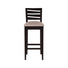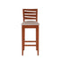 Bancos altos tapizados con respaldo para mayor comodidad.