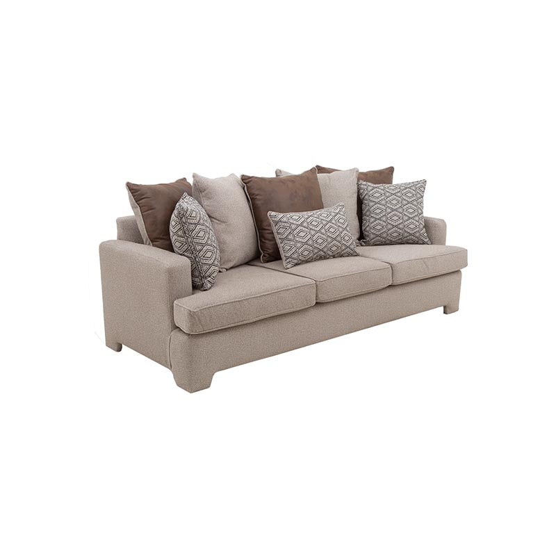 El sofá modelo Quebec es el equilibrio perfecto entre estilo y confort. Tapizado en tela de tejido plano, su suavidad y diseño sofisticado aportan un toque de distinción a cualquier espacio. Los cojines de respaldo y decorativos incluidos no solo añaden comodidad, sino que resaltan su elegancia, creando un ambiente acogedor. Ideal para quienes buscan una pieza versátil que se adapte perfectamente a su hogar.