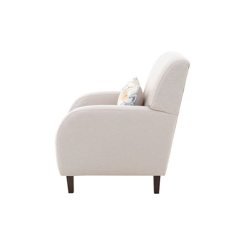 Experimenta la unión perfecta entre estilo clásico y comodidad en el sillón individual Tamayo. Tapizado en tejido plano beige y acompañado de cojines decorativos estampados, este sofá no solo embellece tu espacio, sino que también lo hace más acogedor con su elegante diseño y detalles pensados.
