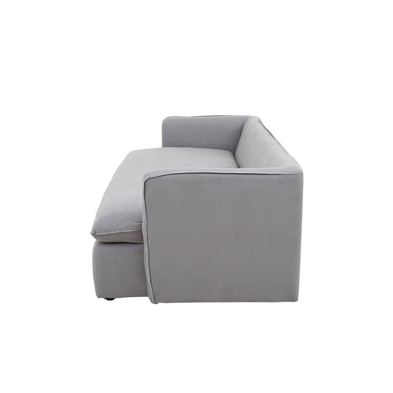 Su tapizado en tela de tejido plano afelpado ofrece una textura aterciopelada y suave al tacto, ideal para crear un ambiente acogedor en tu sala.