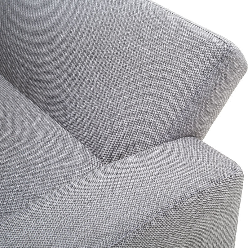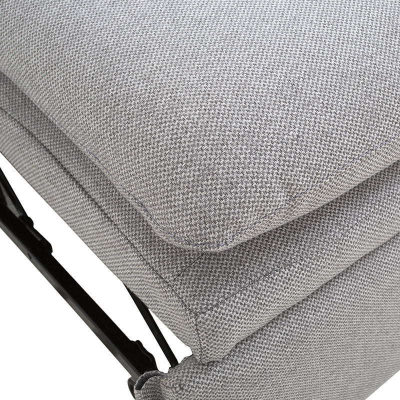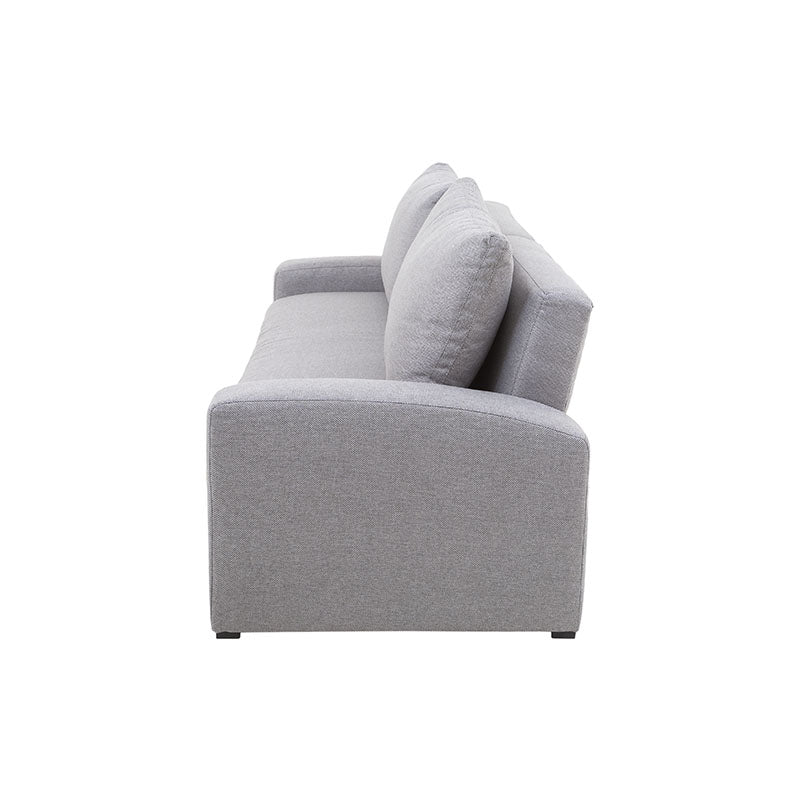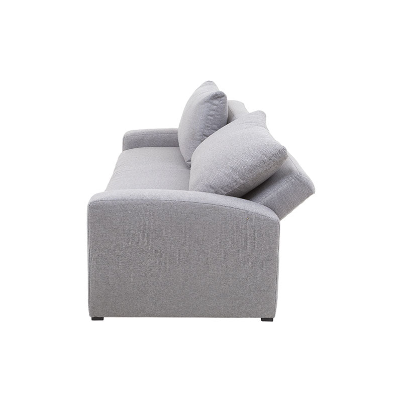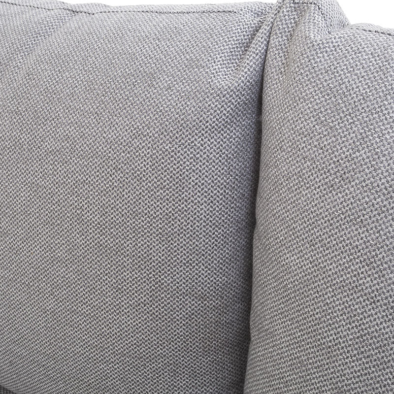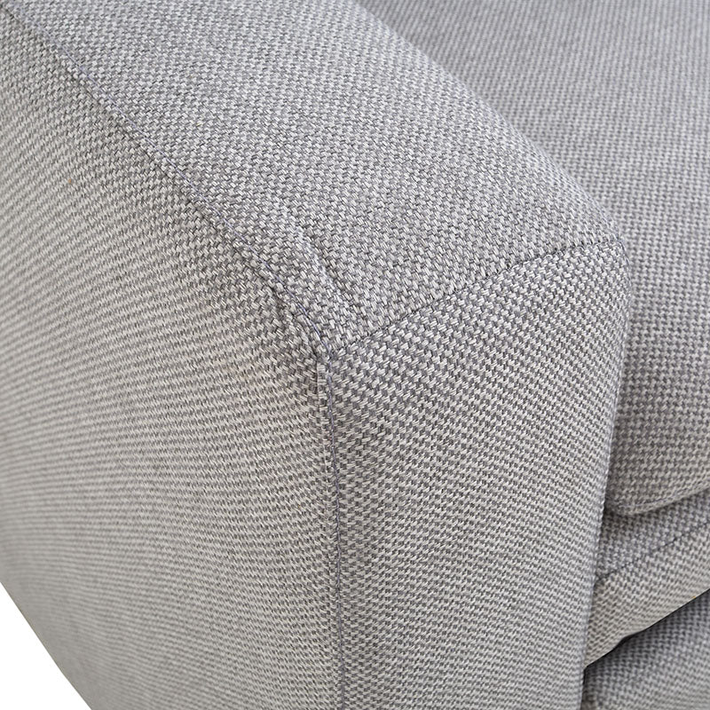 Su tapizado en tela plana afelpada en tono gris oxford transmite elegancia atemporal, mientras que su sólida estructura asegura comodidad tanto de día como de noche.