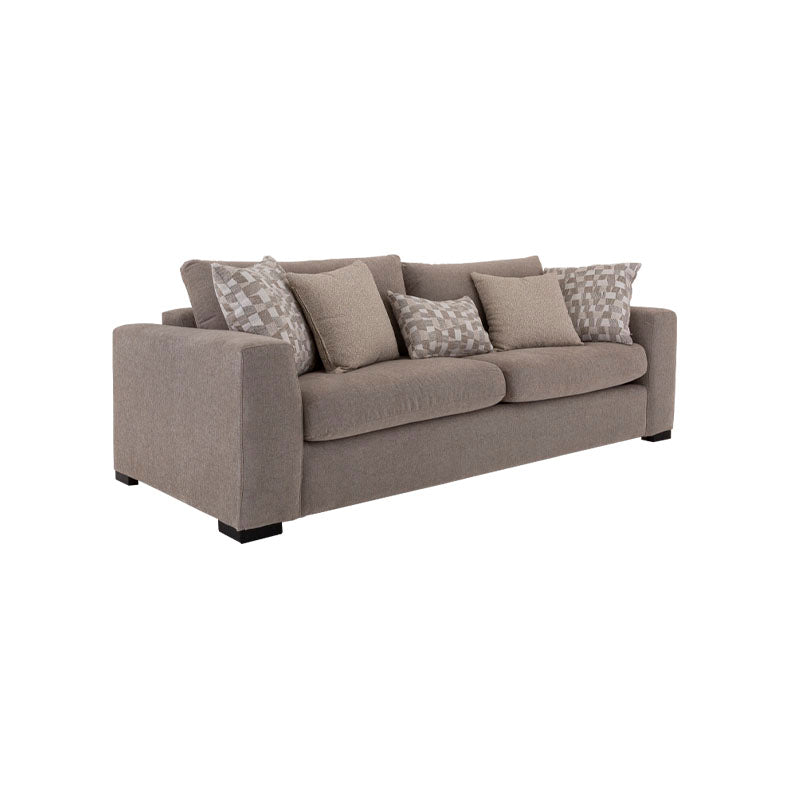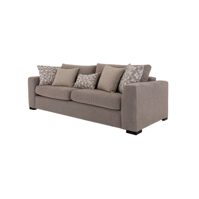 Redescubre el placer de llegar a casa con el sofá Oporto de 3 plazas. Su estructura de madera de pino y tapizado en tela de tejido plano con textura afelpada te envuelven en una suavidad cálida y reconfortante. Con 5 cojines decorativos que realzan su diseño y comodidad, es el lugar ideal para compartir, descansar o simplemente disfrutar el momento.
