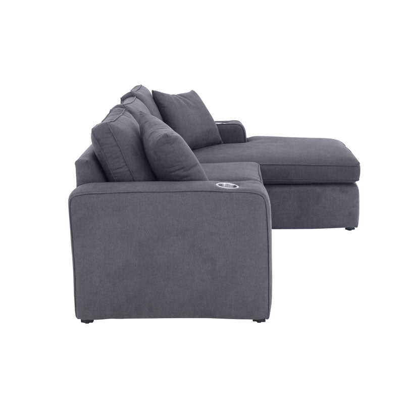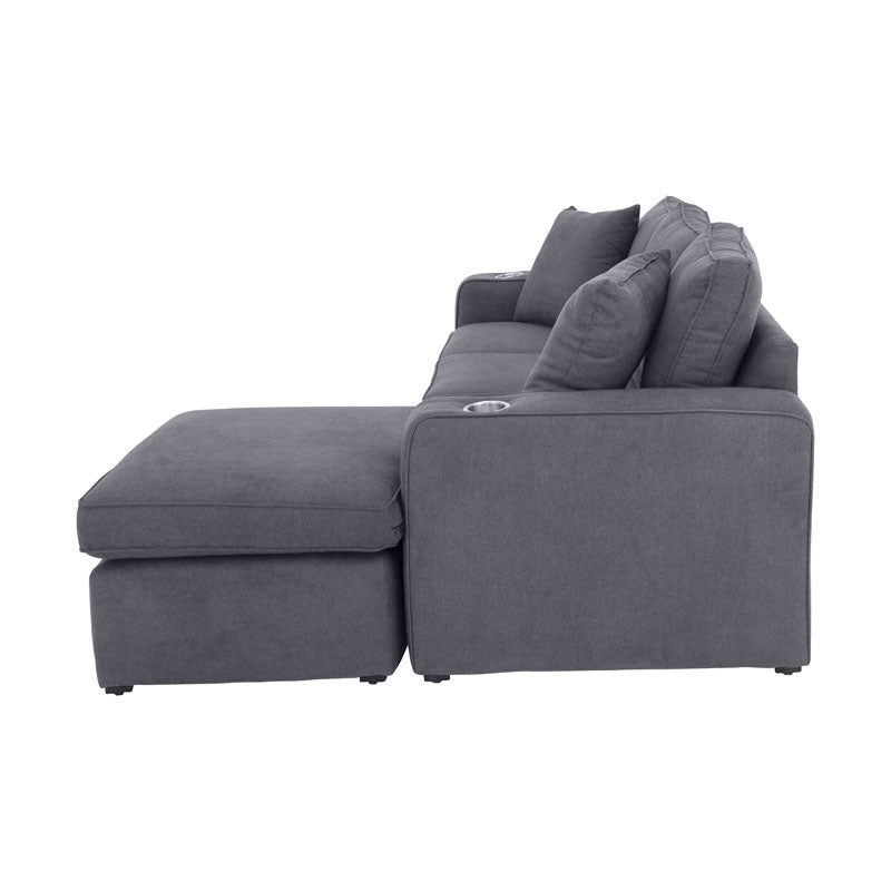 El Sofá Selena es perfecto si buscas un mueble cómodo, práctico y con un diseño moderno que se adapte a tu estilo de vida. Su tapizado en tono gris oscuro le da un look elegante y fácil de combinar, mientras que su chaise te invita a relajarte sin culpa.