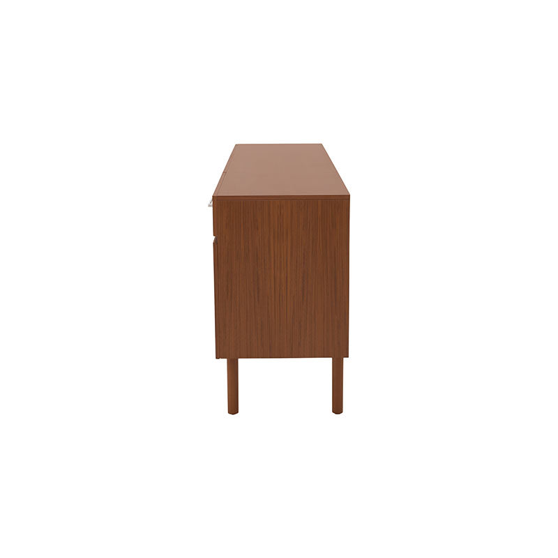 Fabricado en elegante chapa de nogal, destaca por sus líneas limpias y proporciones equilibradas que aportan modernidad y calidez a tu hogar.