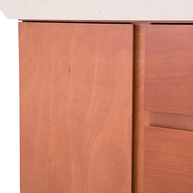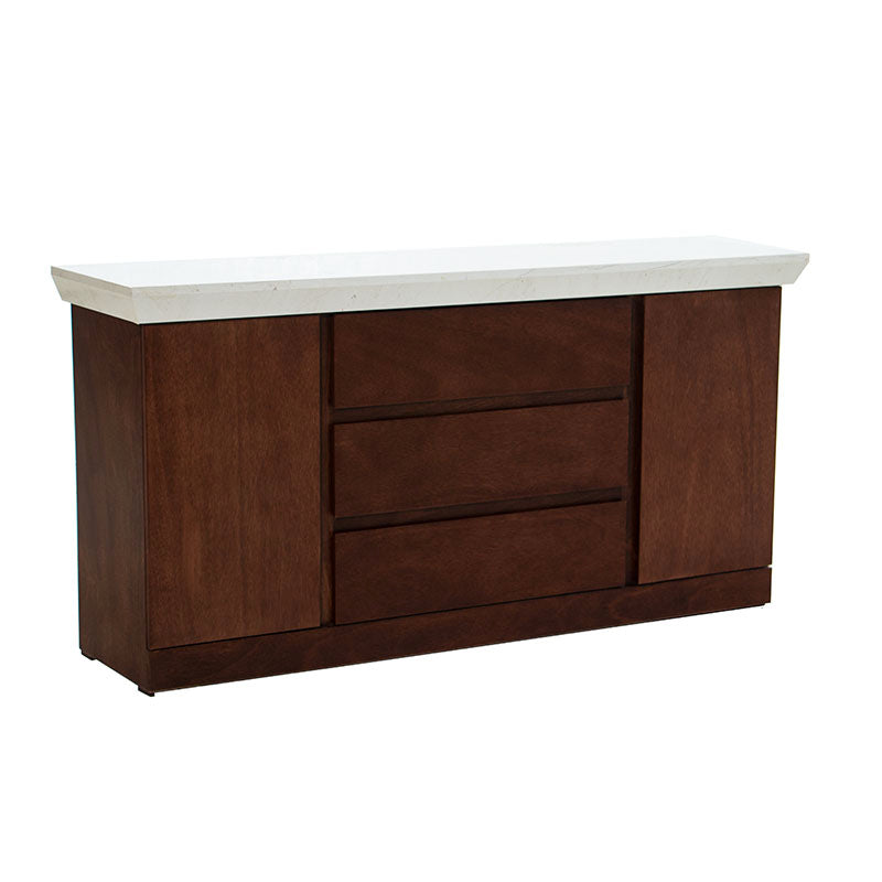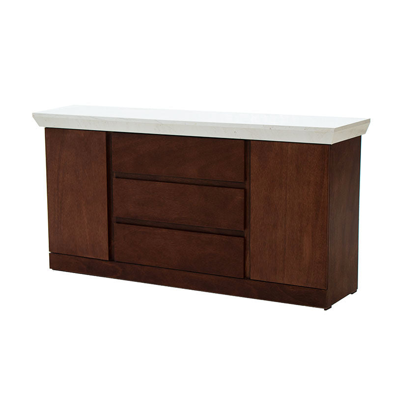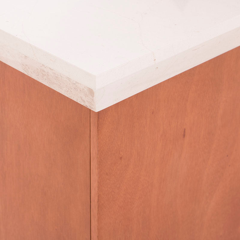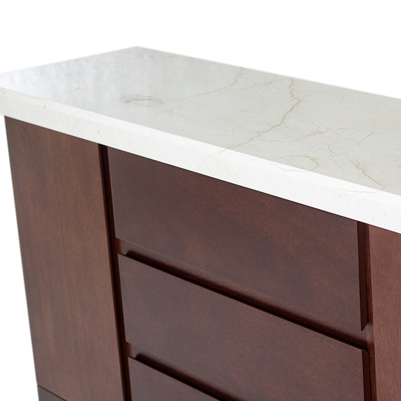 Fabricado en resistente chapa de caoba y realzado con una cubierta de mármol Belagio, este mueble combina lujo y funcionalidad en perfecta armonía.
