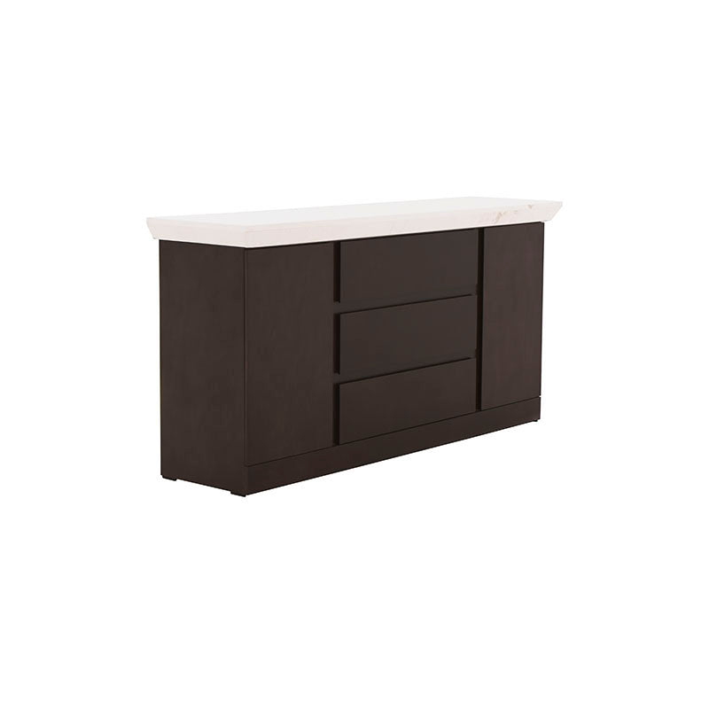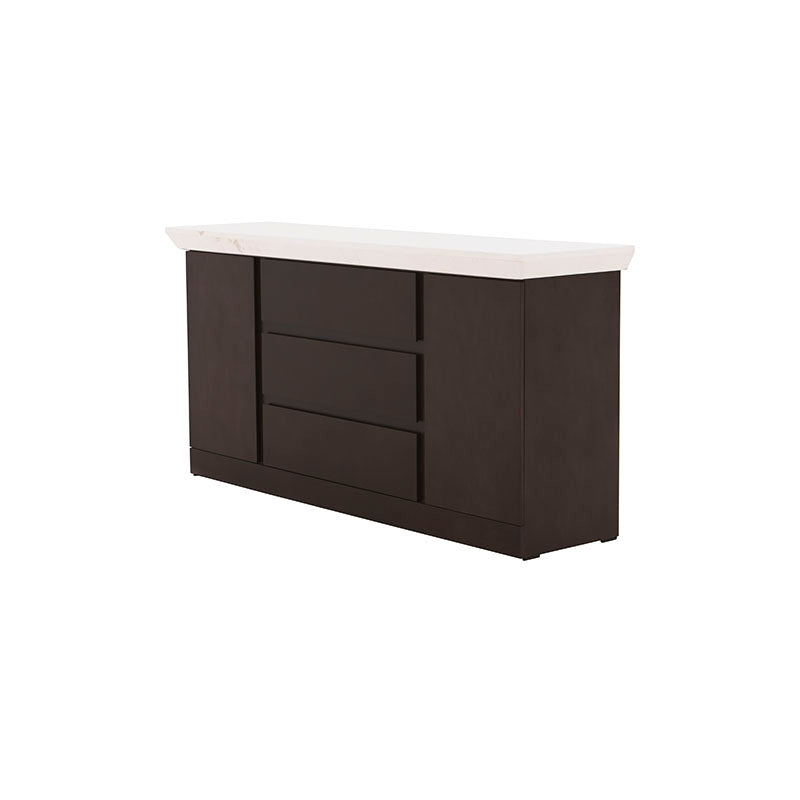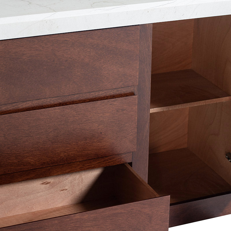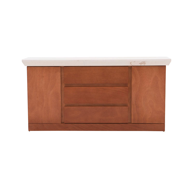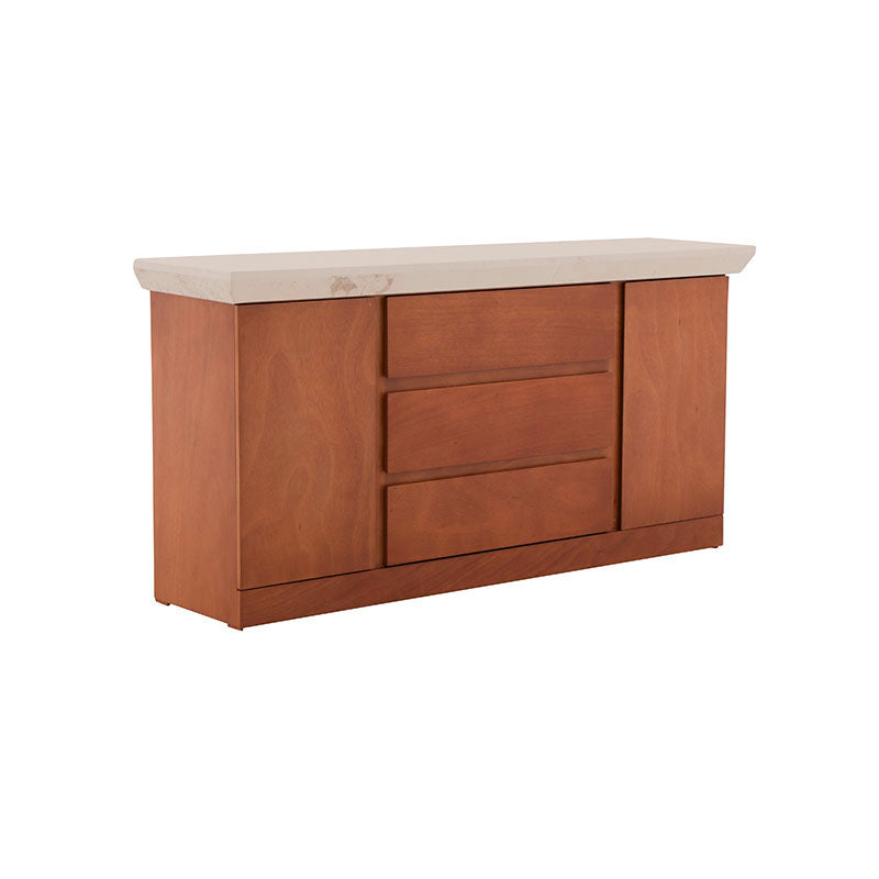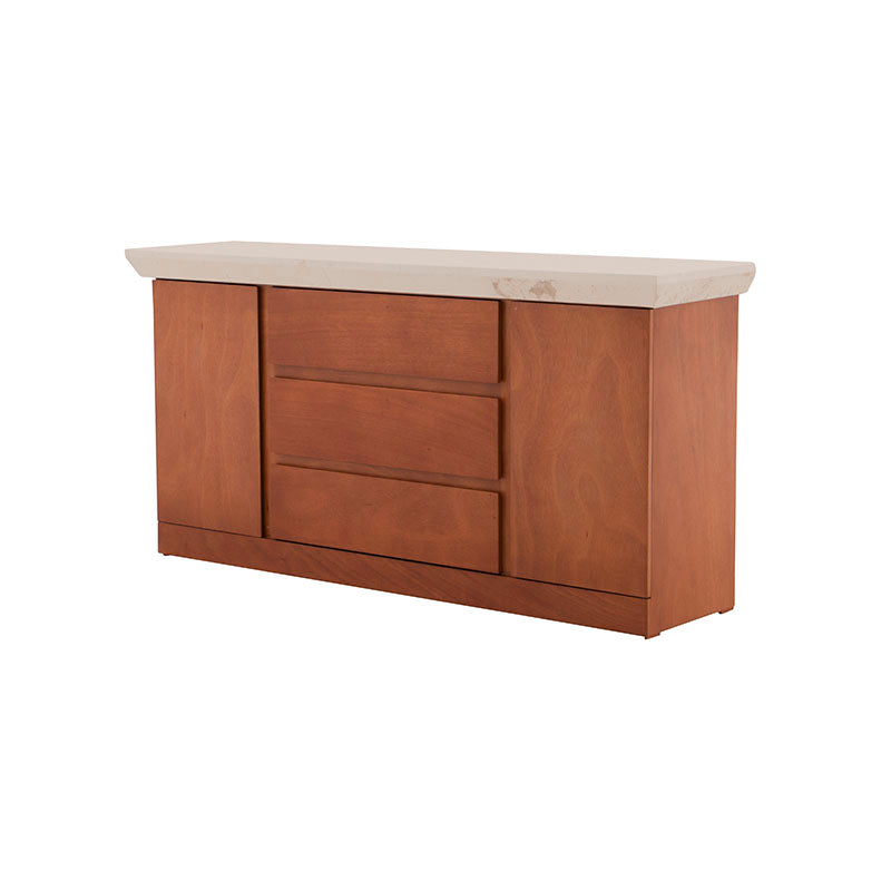 Fabricado en resistente chapa de caoba y realzado con una cubierta de mármol Belagio, este mueble combina lujo y funcionalidad en perfecta armonía.