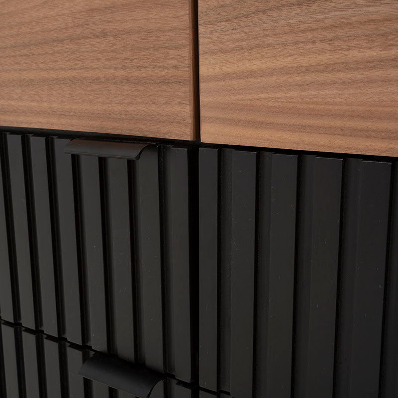 Experimenta el lujo del almacenamiento con la Cómoda Jess. Fabricada con madera industrializada y madera de pino enchapada en nogal, ofrece una combinación de elegancia y calidad. Las bases y jaladeras metálicas aportan estabilidad y modernidad. Con esta cómoda, tendrás todo el espacio que necesitas para tu ropa, manteniendo un ambiente elegante y ordenado en tu dormitorio.ctico y elegante.
