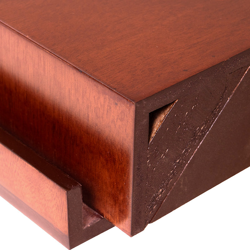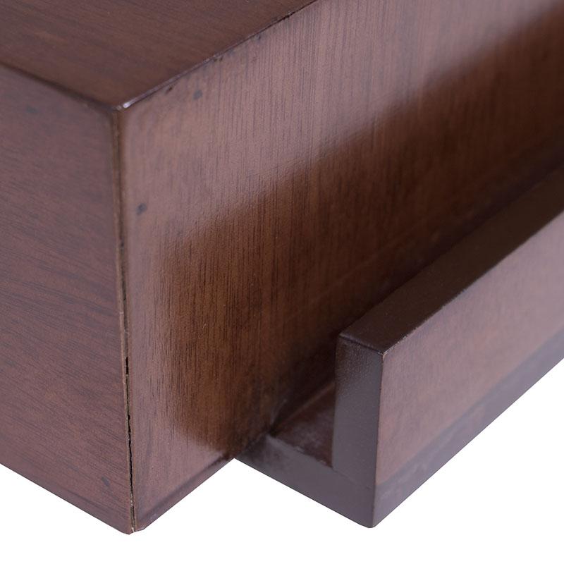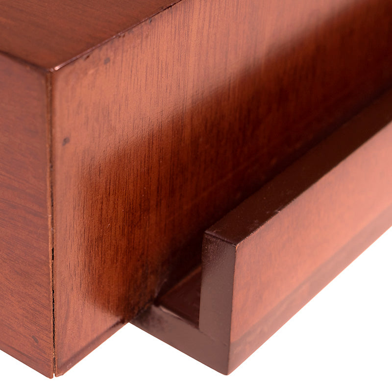 Elaborado en fina chapa de caoba, su acabado cálido y natural aporta distinción a cualquier sala u oficina.