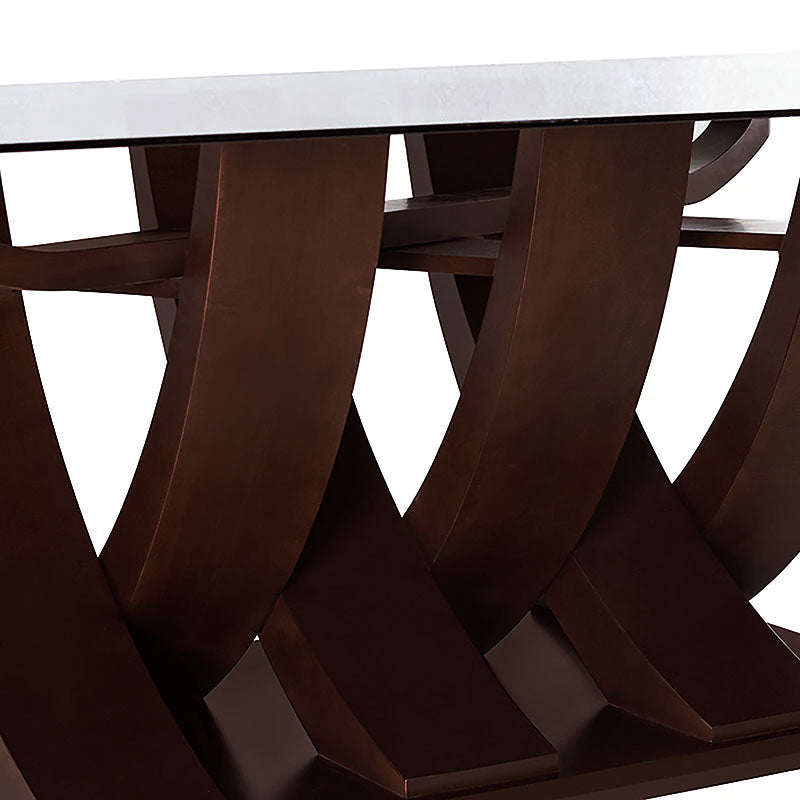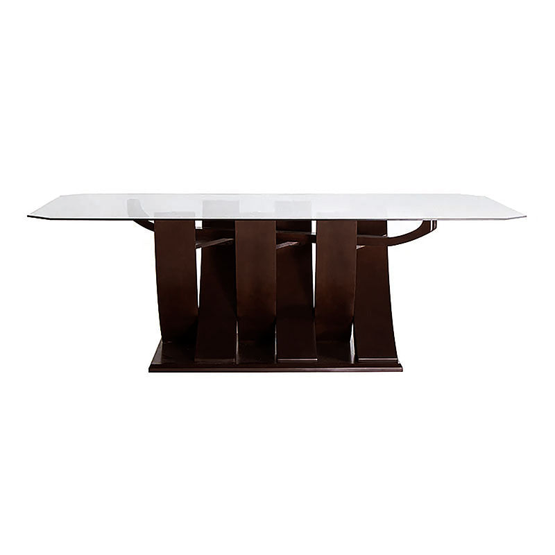 La Mesa Rectangular Burj, con su sólida estructura de Hack Berry en tono nogal y una elegante cubierta de cristal biselado, es mucho más que un simple mueble. Su diseño de pedestal le añade un toque de distinción, convirtiendo tu espacio en un lugar único y atractivo.