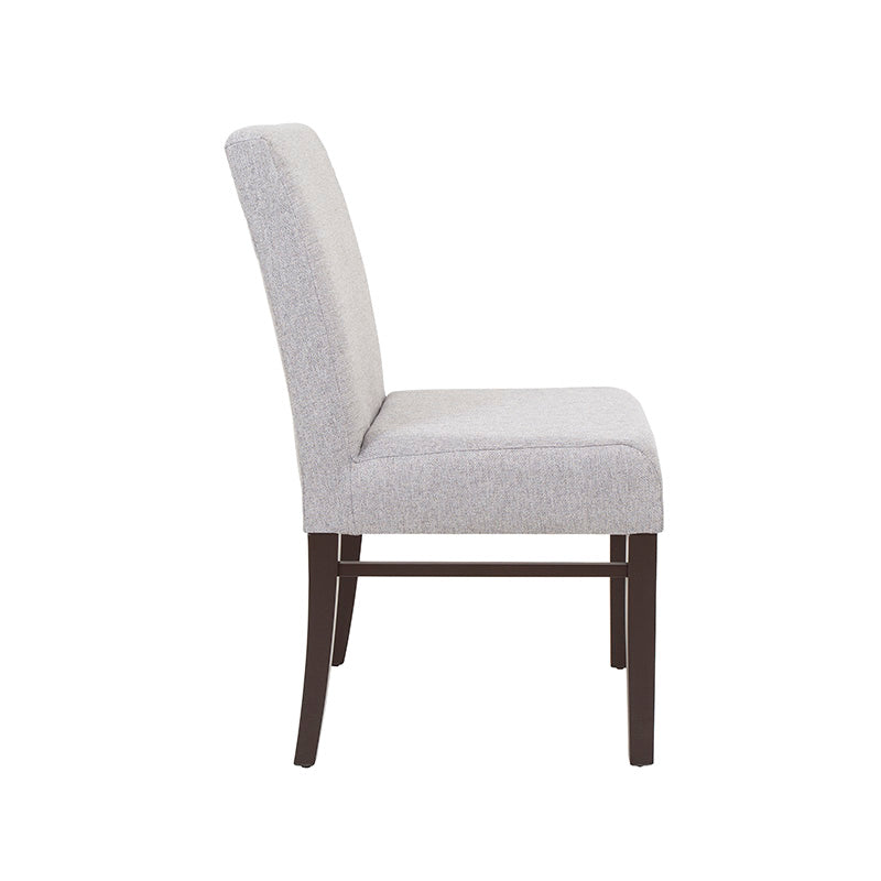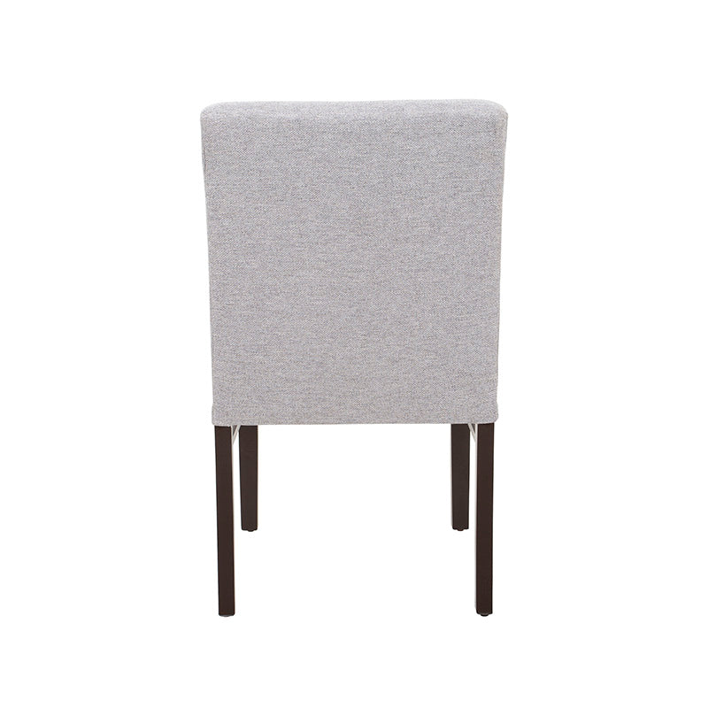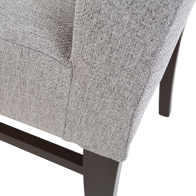 Su tapizado en suave tela gris crea un contraste armonioso con las patas de madera en tono nogal, aportando calidez y un aire moderno a cualquier espacio.