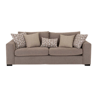 Redescubre el placer de llegar a casa con el sofá Oporto de 3 plazas. Su estructura de madera de pino y tapizado en tela de tejido plano con textura afelpada te envuelven en una suavidad cálida y reconfortante. Con 5 cojines decorativos que realzan su diseño y comodidad, es el lugar ideal para compartir, descansar o simplemente disfrutar el momento.
