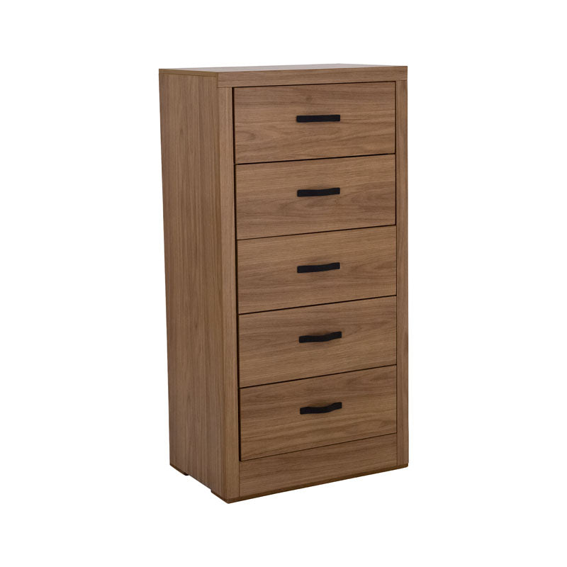 La Cómoda Allure es la pieza perfecta para mantener tu recámara organizada sin sacrificar estilo. Su acabado en melamina color Catar aporta calidez y modernidad, mientras que sus 5 cajones te dan el espacio que necesitas para guardar tu ropa y esenciales del día a día.