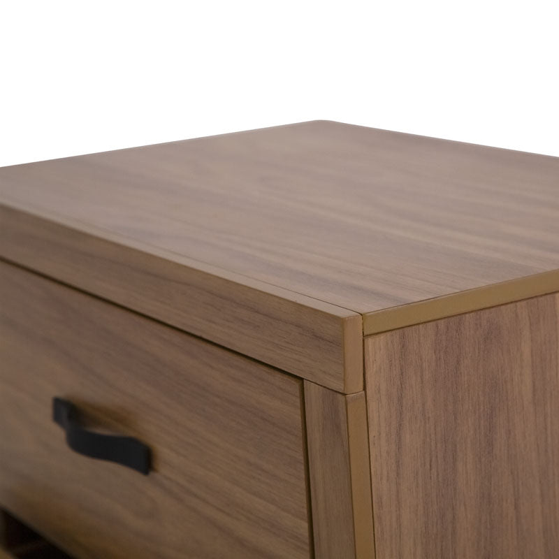 Fabricada en MDF con melamina color Catar: resistente, fácil de limpiar y con un acabado natural y elegante.
