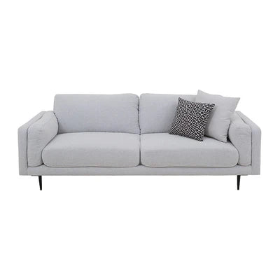 El sofá Alessandra de 3 plazas, tapizado en tejido plano afelpado disponible en Negro, Gris o Marfil, ofrece suavidad y estilo, convirtiéndose en el centro perfecto para compartir momentos en familia o recibir visitas con comodidad.
