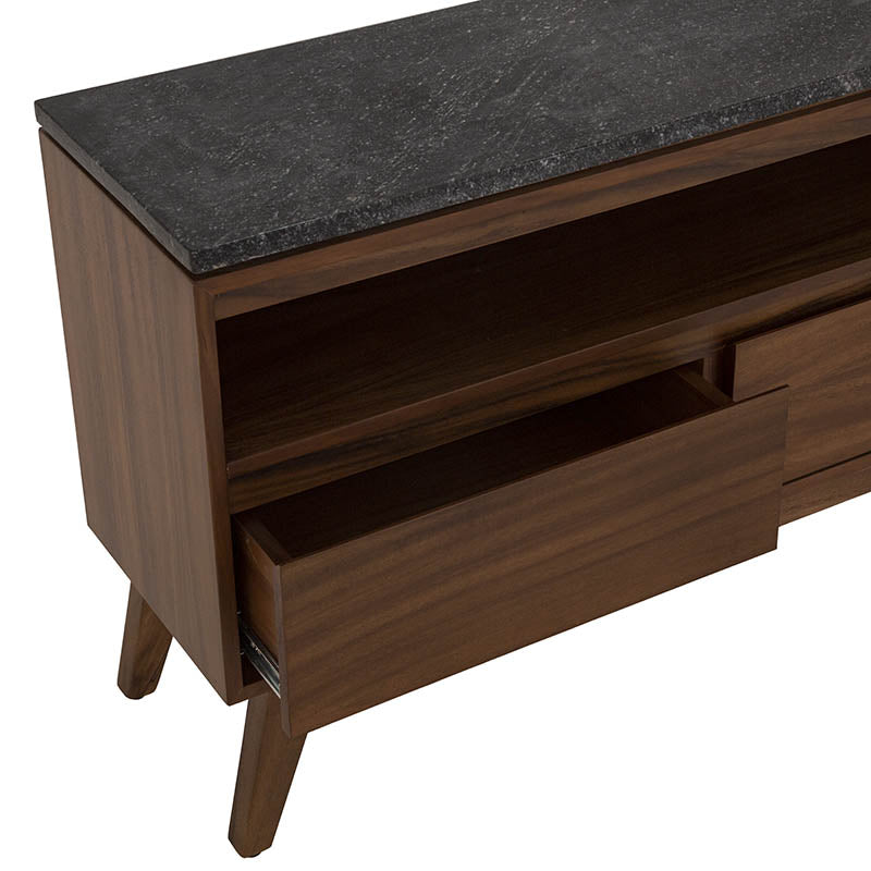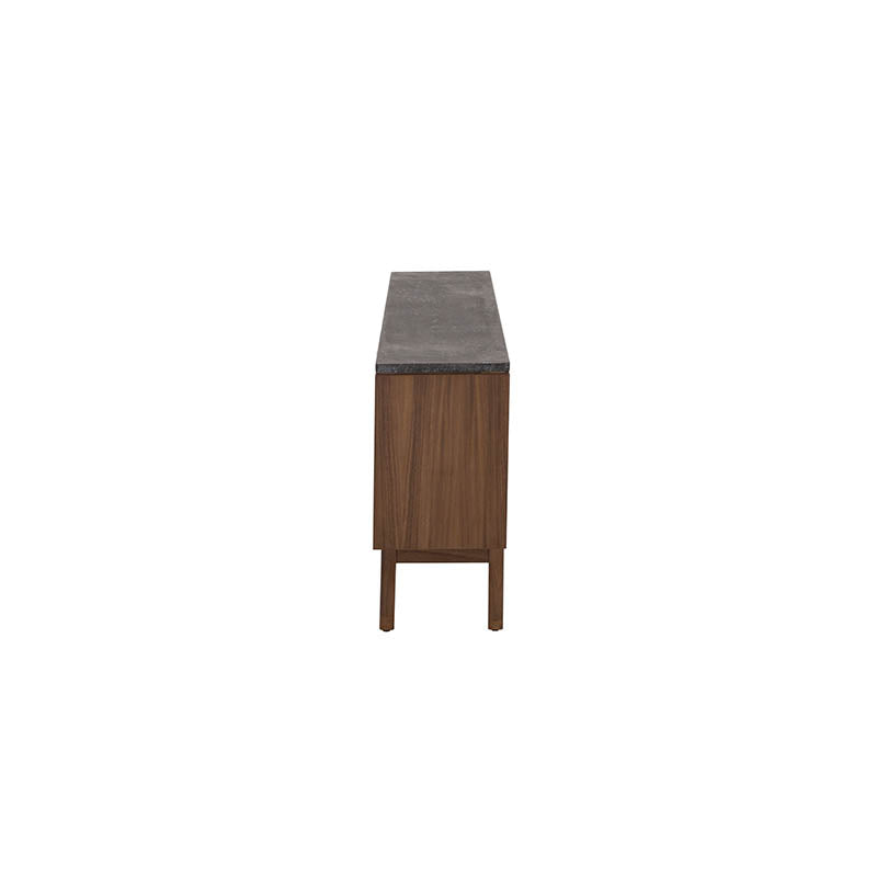 Con medidas de 1.50 x 0.60 m, es el tamaño perfecto para salas modernas, estudios y áreas de entretenimiento. La pieza integra una cubierta de granito Vía Láctea, un material resistente, elegante y de apariencia exclusiva que combina a la perfección con el tono parota. Este contraste en texturas eleva la estética del mueble, añadiendo profundidad y un toque de lujo natural.