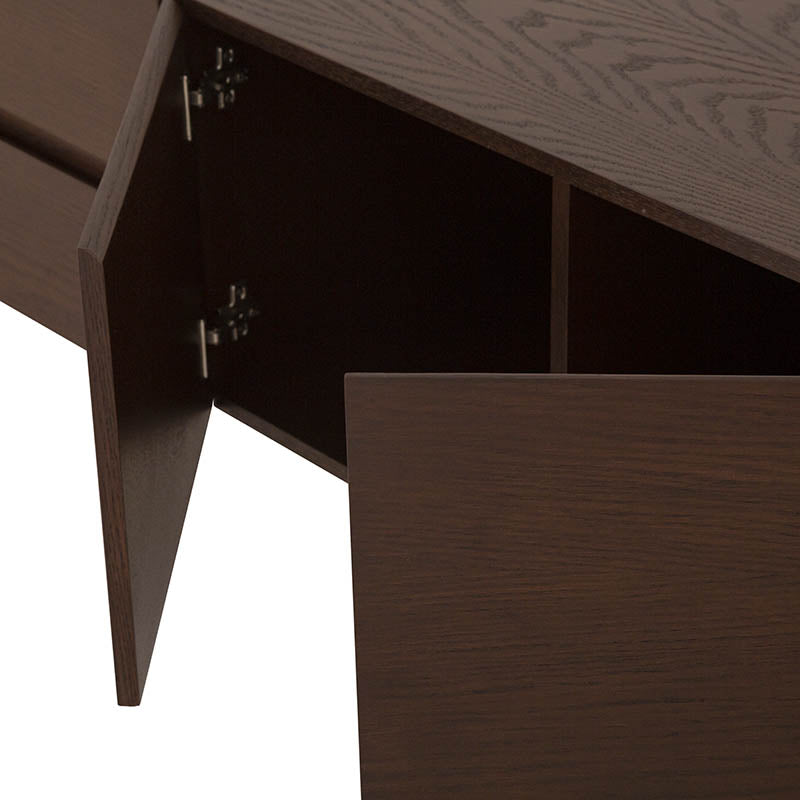 Además de su belleza visual, el Mueble de TV Zeus proporciona espacio suficiente para organizar consolas, sistemas de audio, accesorios decorativos y todo lo necesario para mantener tu área de entretenimiento ordenada y con estilo. Es una pieza versátil que combina practicidad con una presencia elegante.