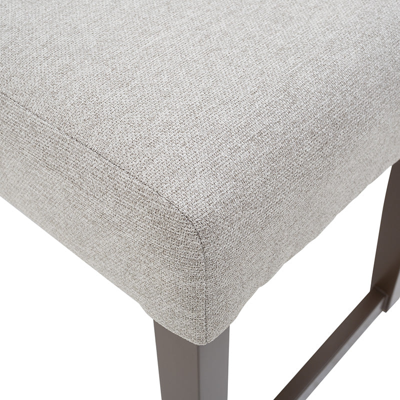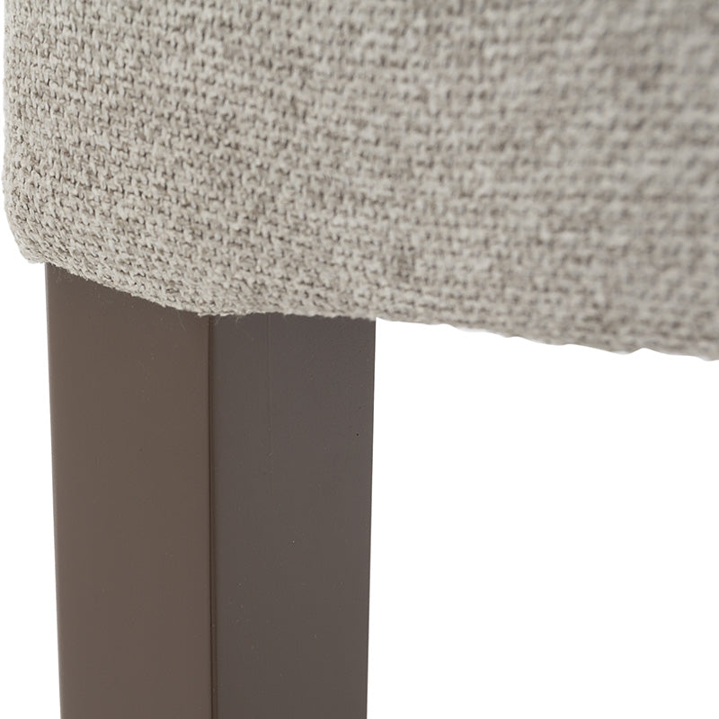 Tapizada en una suave tela color café claro que transmite calidez, y con robustas patas de madera en elegante tono nogal, esta pieza ofrece comodidad y resistencia en cada uso.