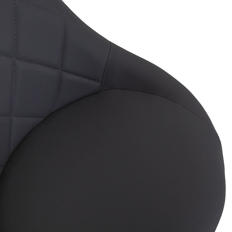 Tapizado en Leather Touch color negro, ofrece una textura suave al tacto y una sensación de confort superior, ideal para acompañar barras, cocinas o espacios modernos. Su base metálica en cromo plata aporta un brillo sutil y una estructura firme que garantiza estabilidad y durabilidad, al mismo tiempo que realza su aspecto sofisticado.