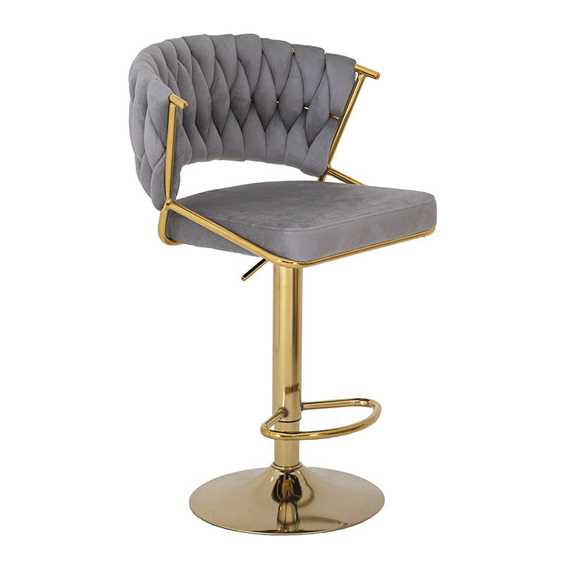 El banco Imperial es sinónimo de sofisticación y confort. Su diseño combina el lujo del terciopelo gris con la elegancia de una base metálica en cromo dorado, creando una pieza que destaca por su presencia y estilo contemporáneo.