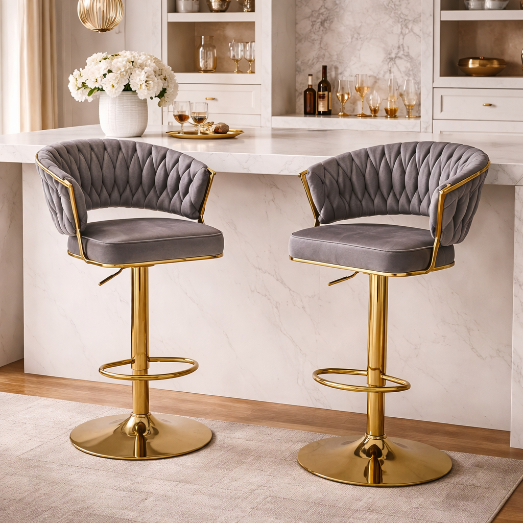 El banco Imperial es una pieza de diseño contemporáneo que eleva cualquier espacio con un toque sofisticado y moderno. Su asiento tapizado en terciopelo gris aporta confort y distinción, mientras que su base metálica dorada añade presencia visual y estabilidad. Ideal para barras, islas o comedores altos, combina funcionalidad, estilo y comodidad en un solo mueble.