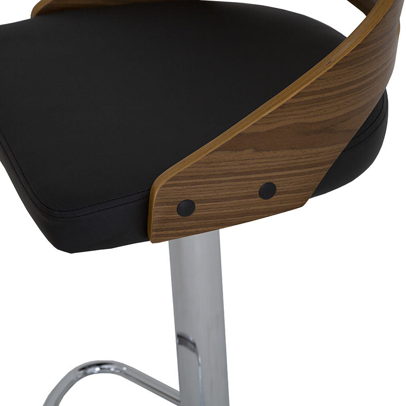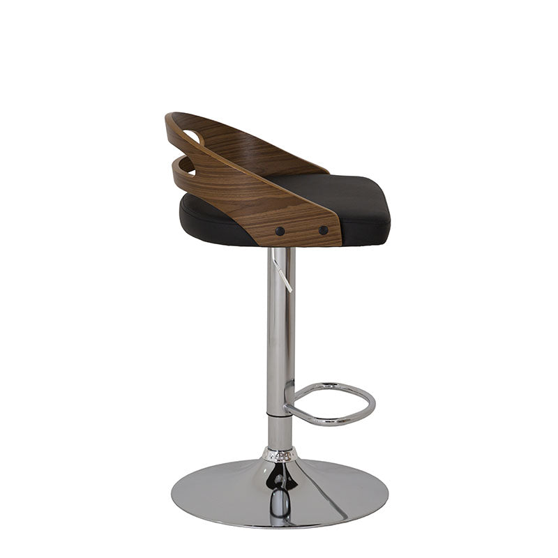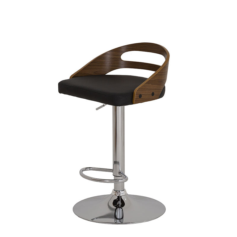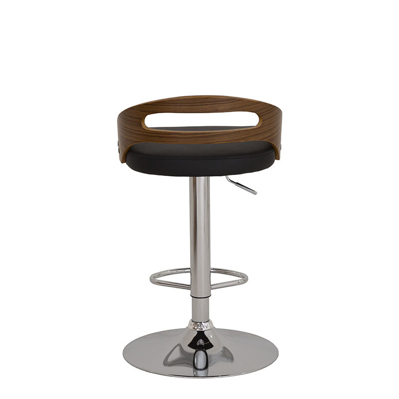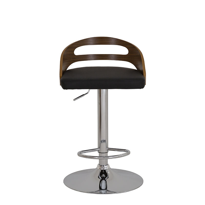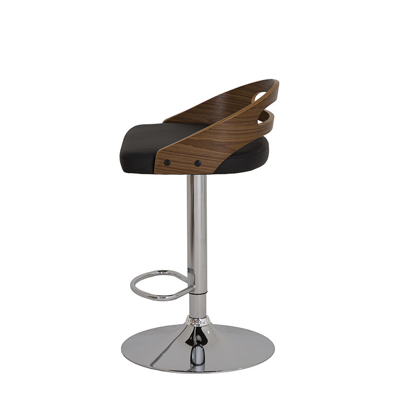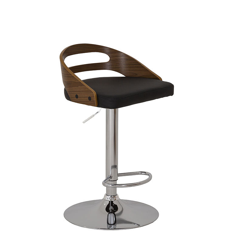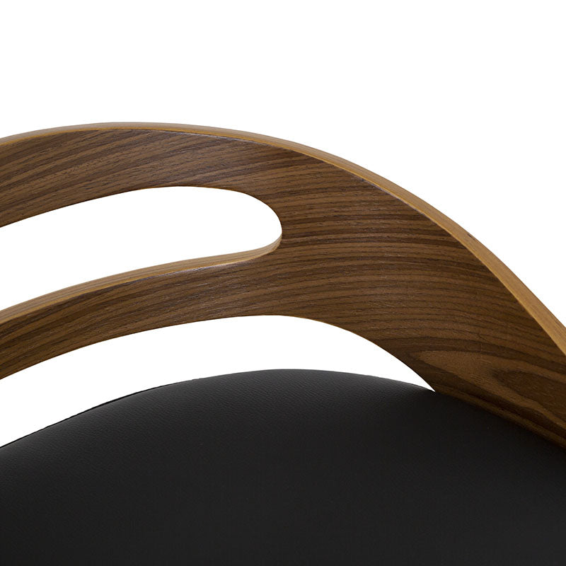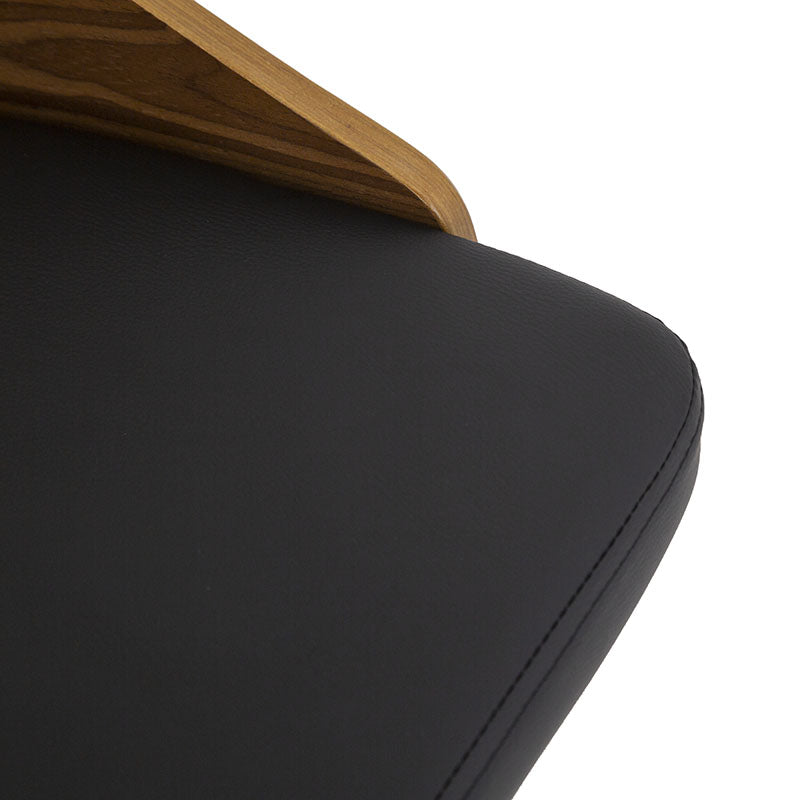 Confeccionado en Leather Touch color negro, combina una textura suave y resistente con un respaldo en contrachapa que aporta calidez y contraste. Su base metálica en cromo plata añade un toque contemporáneo y una estructura firme que garantiza estabilidad y durabilidad.