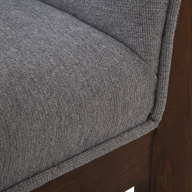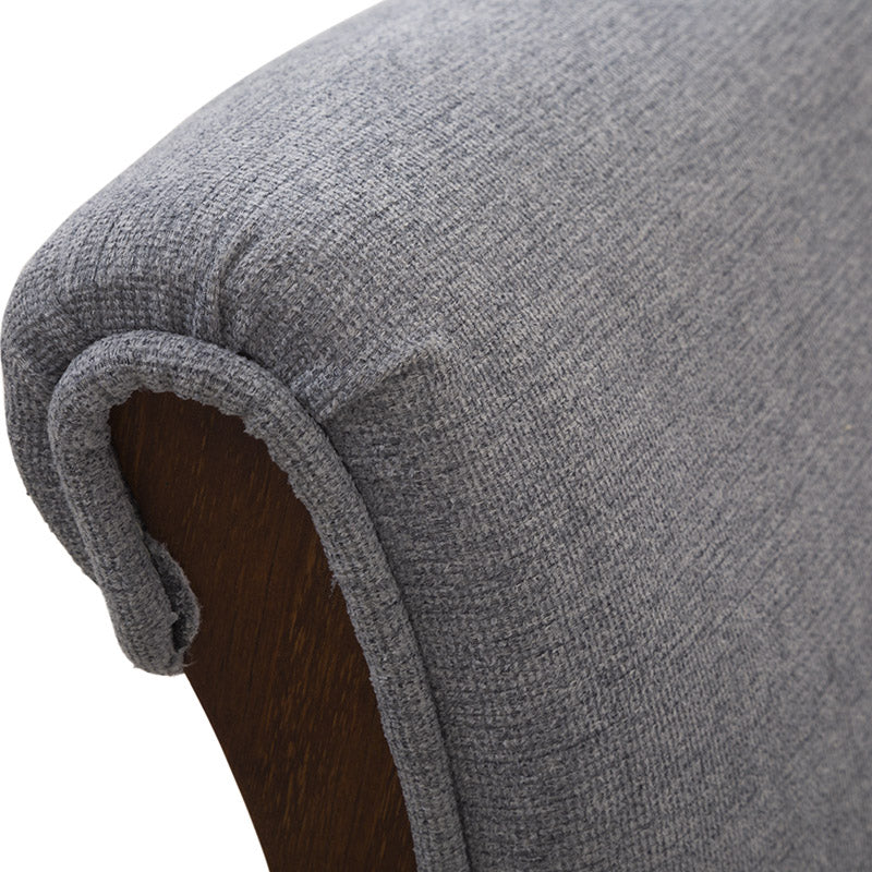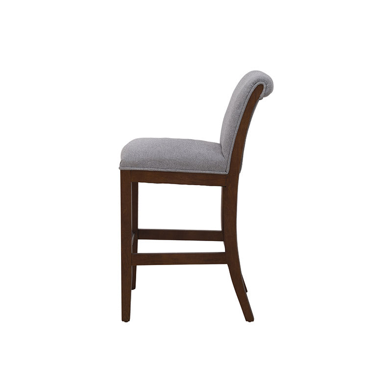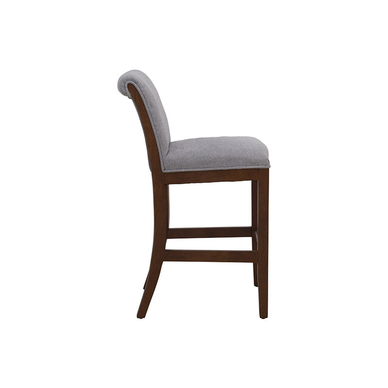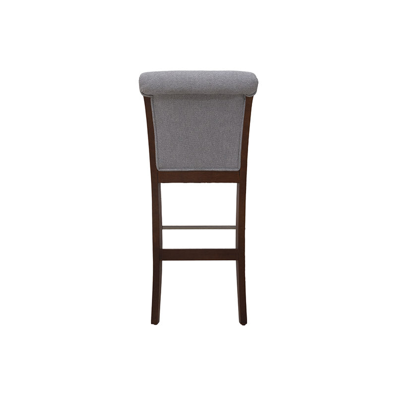 Fabricado en madera de pino con acabado en okume oscuro, destaca por la calidez de sus tonos y la solidez de su estructura. Su asiento tapizado en suave tela Monach TP Gaia Silver aporta un toque contemporáneo y refinado, además de una sensación de comodidad ideal para prolongar las charlas o disfrutar un buen vino.