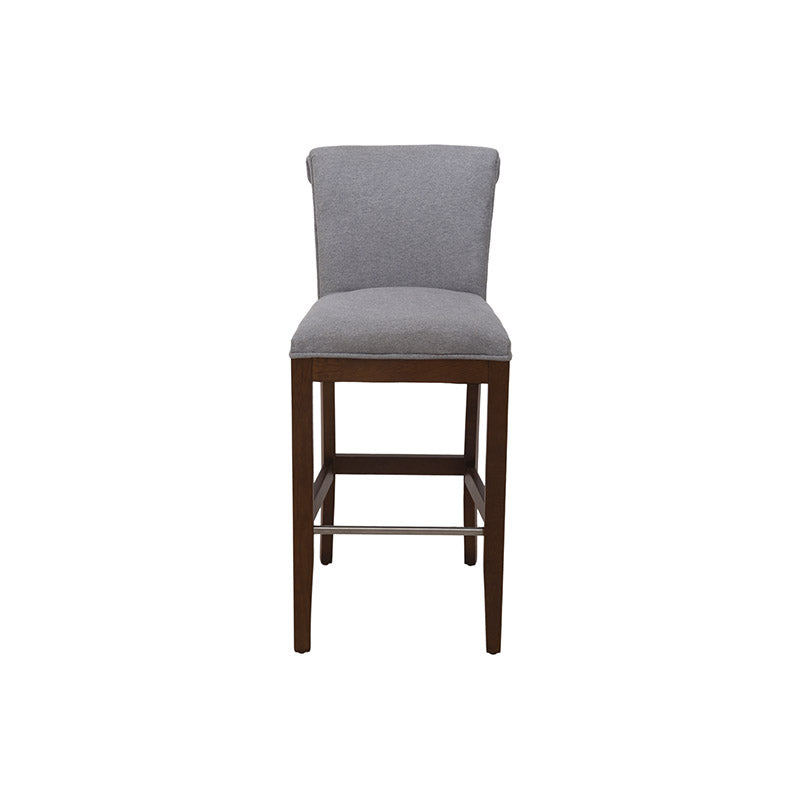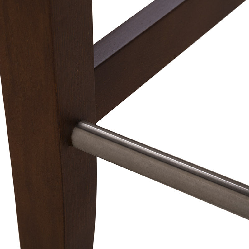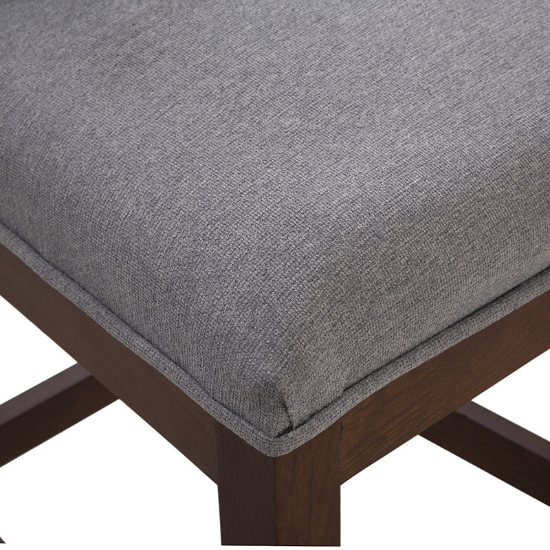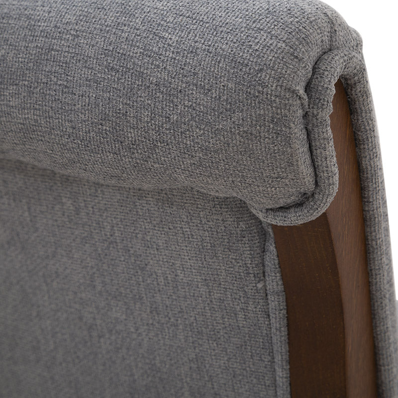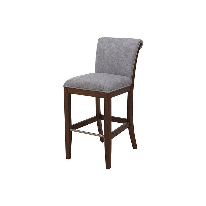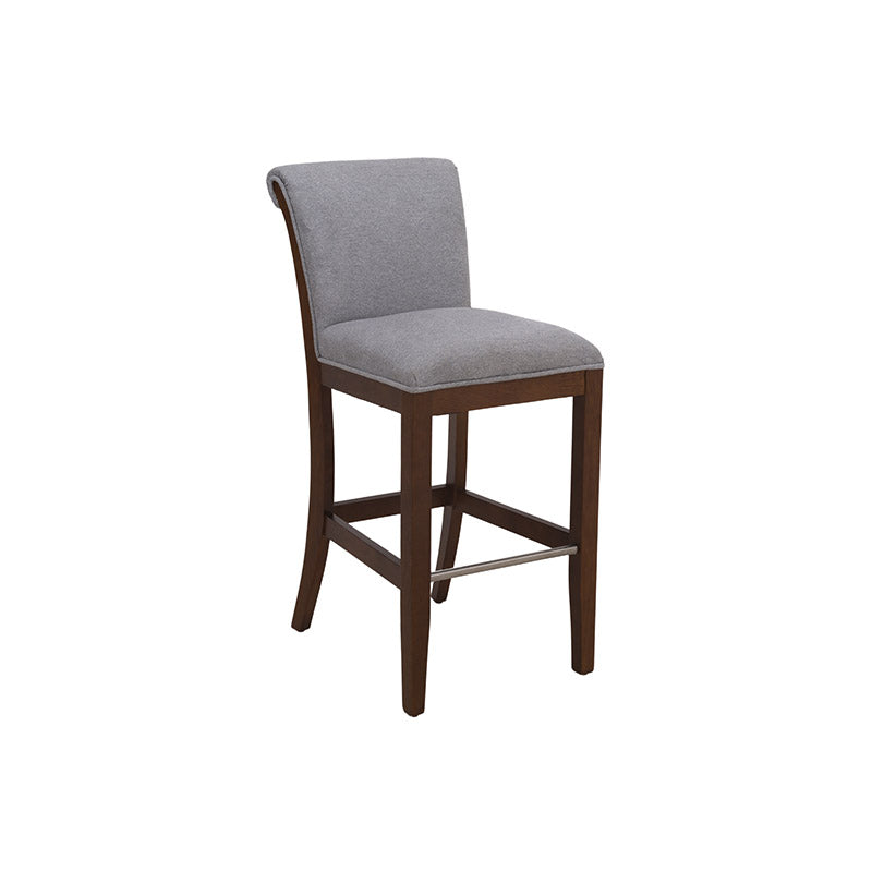 Fabricado en madera de pino con acabado en okume oscuro, destaca por la calidez de sus tonos y la solidez de su estructura. Su asiento tapizado en suave tela Monach TP Gaia Silver aporta un toque contemporáneo y refinado, además de una sensación de comodidad ideal para prolongar las charlas o disfrutar un buen vino.