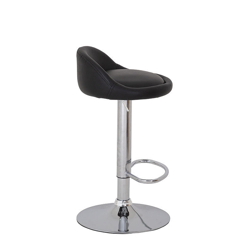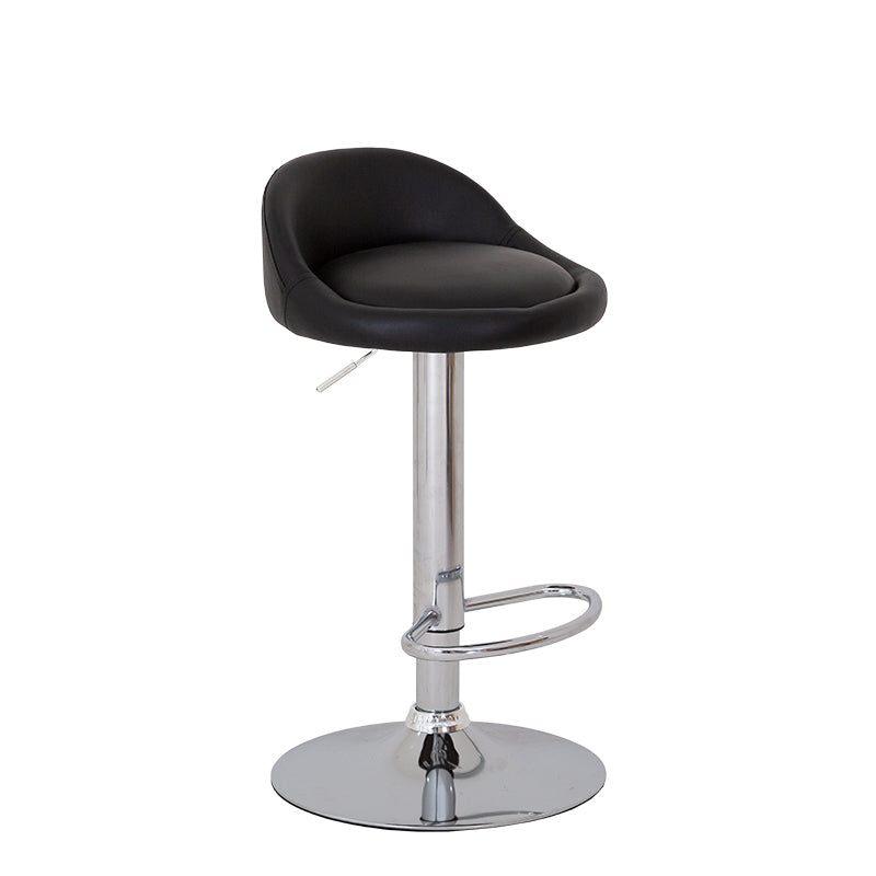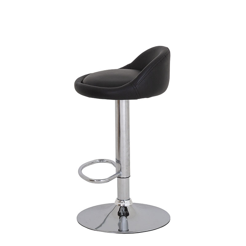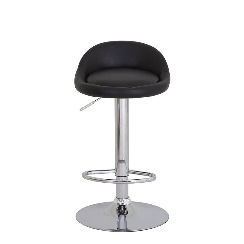 Tapizado en Leather Touch color negro, ofrece una textura suave al tacto y una sensación de confort superior, ideal para acompañar barras, cocinas o espacios modernos. Su base metálica en cromo plata aporta un brillo sutil y una estructura firme que garantiza estabilidad y durabilidad, al mismo tiempo que realza su aspecto sofisticado.