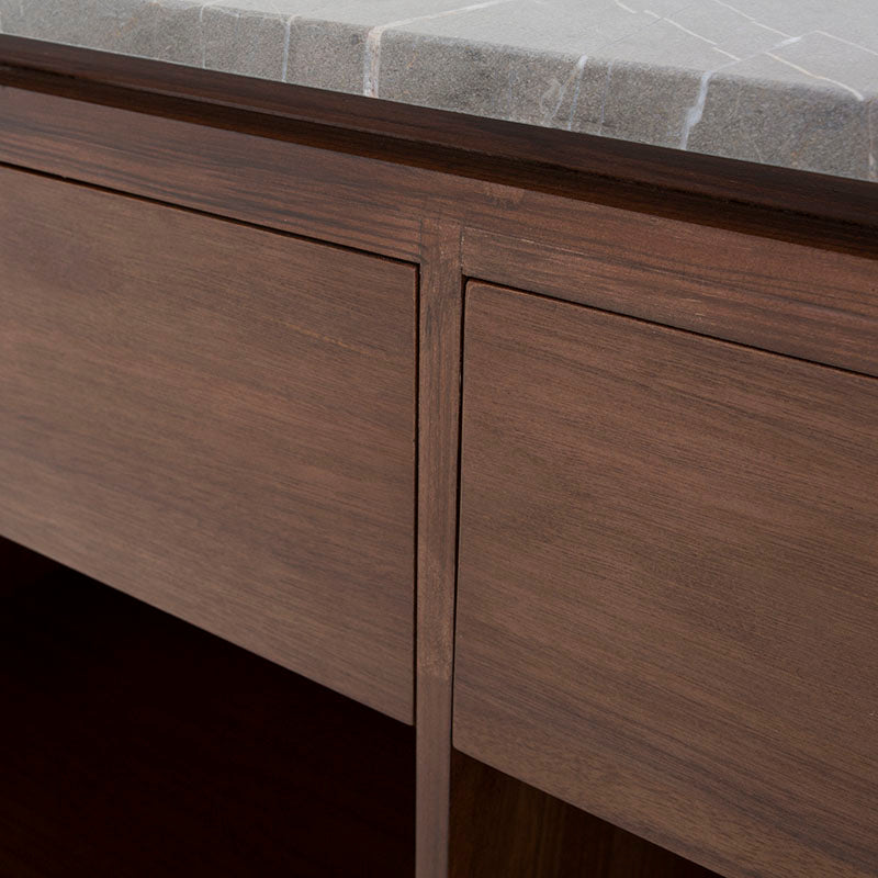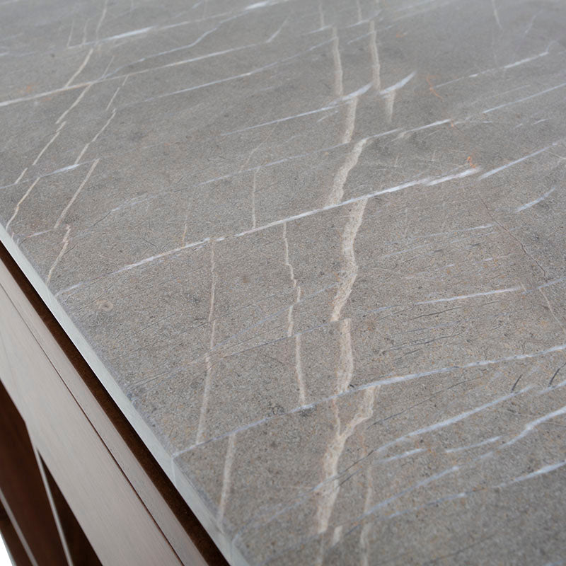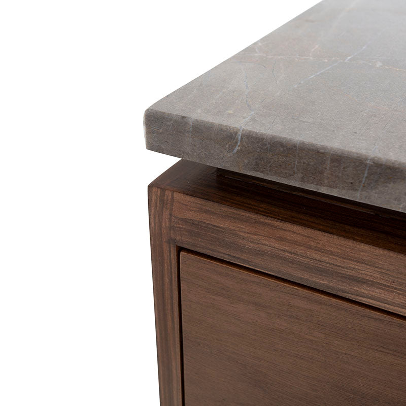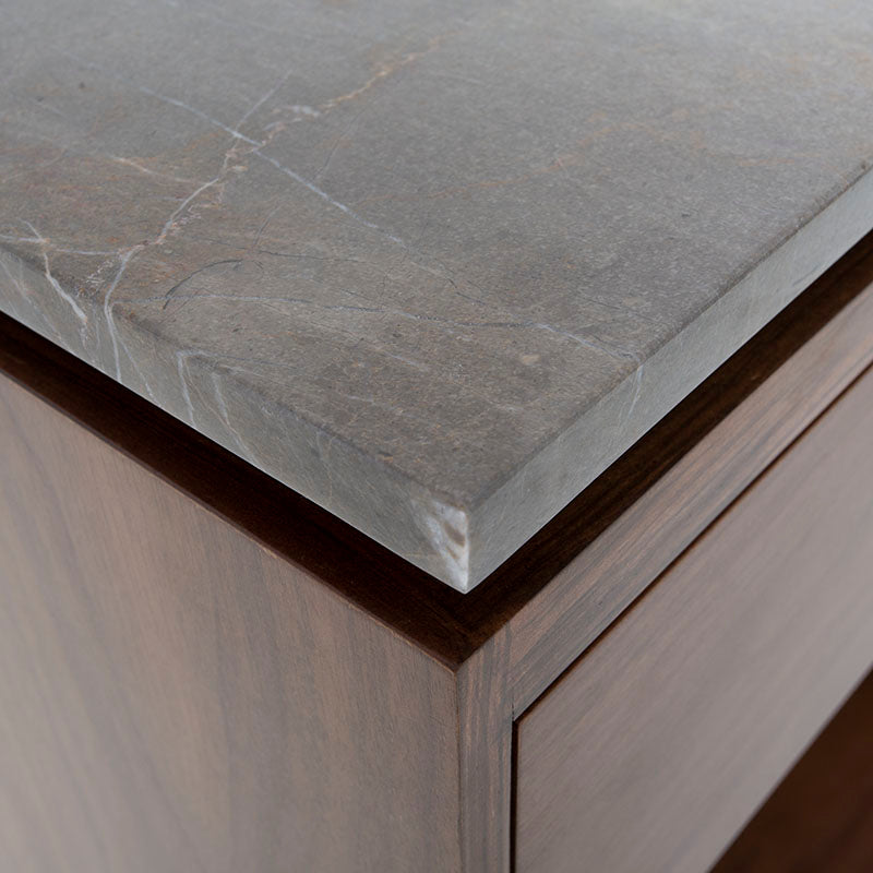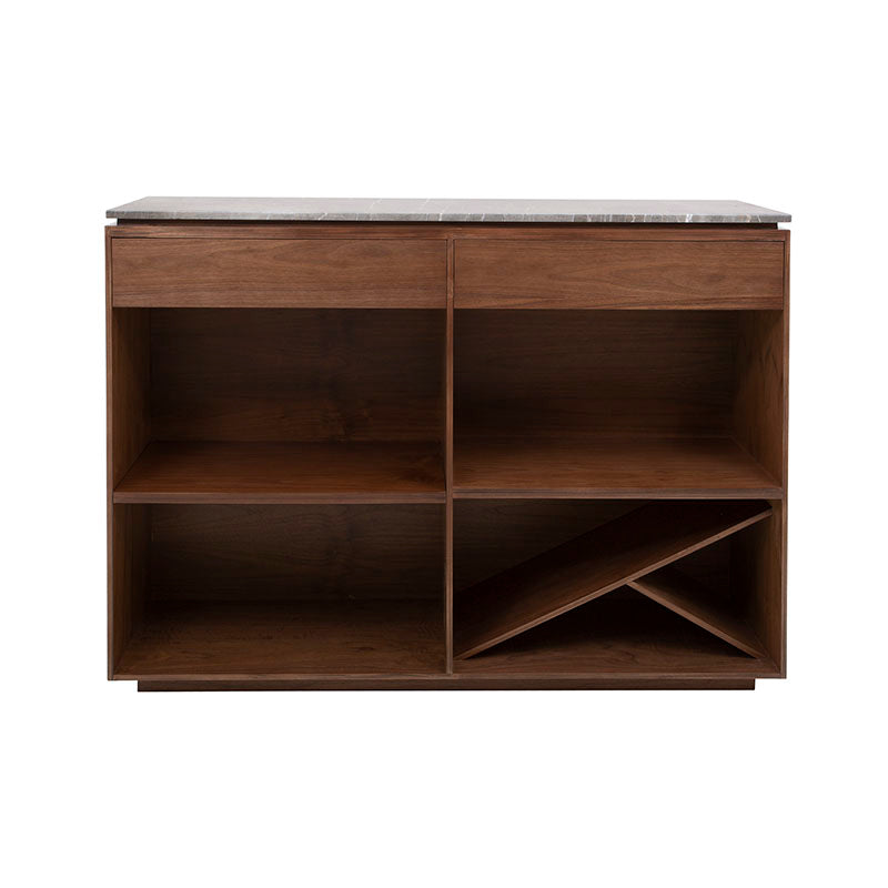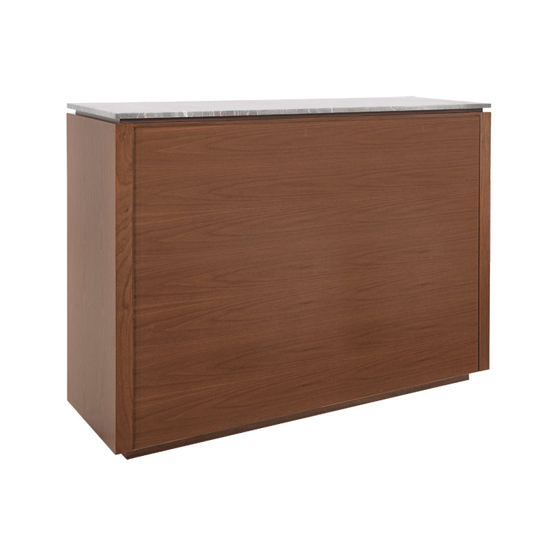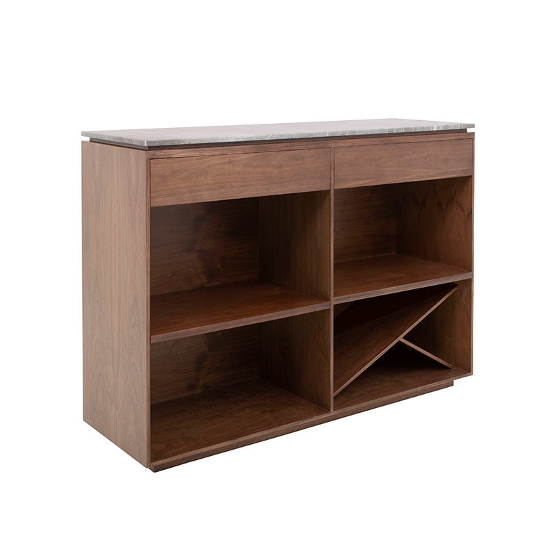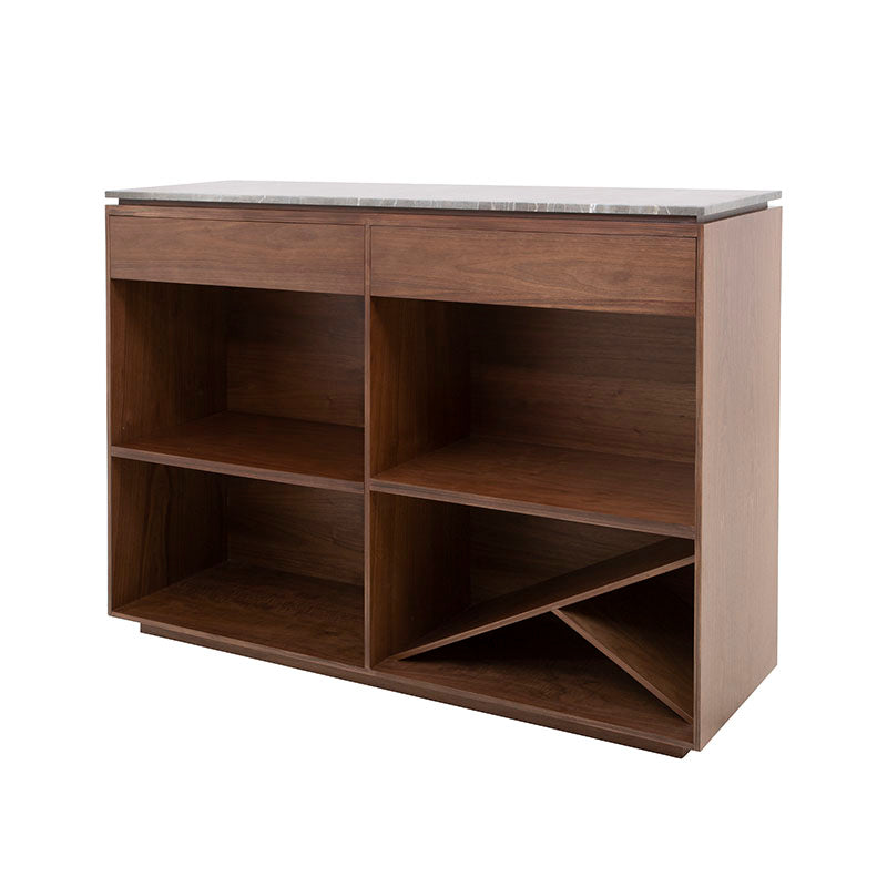 La Barra Berne Made es una pieza de lujo diseñada para transformar cualquier espacio social en un ambiente elegante y contemporáneo. Su estructura en fina chapa de nogal aporta calidez y carácter, mientras que la cubierta de mármol Santo Tomás gris añade un nivel de sofisticación que convierte cada reunión en una experiencia exclusiva. Este equilibrio entre materiales premium y diseño estilizado hace que la barra no solo sea funcional, sino también un elemento decorativo que destaca de inmediato.