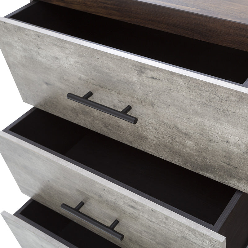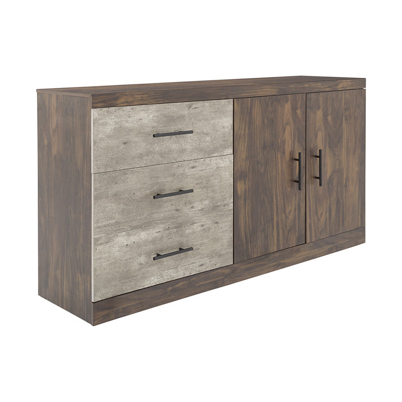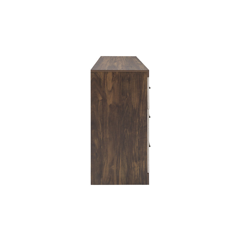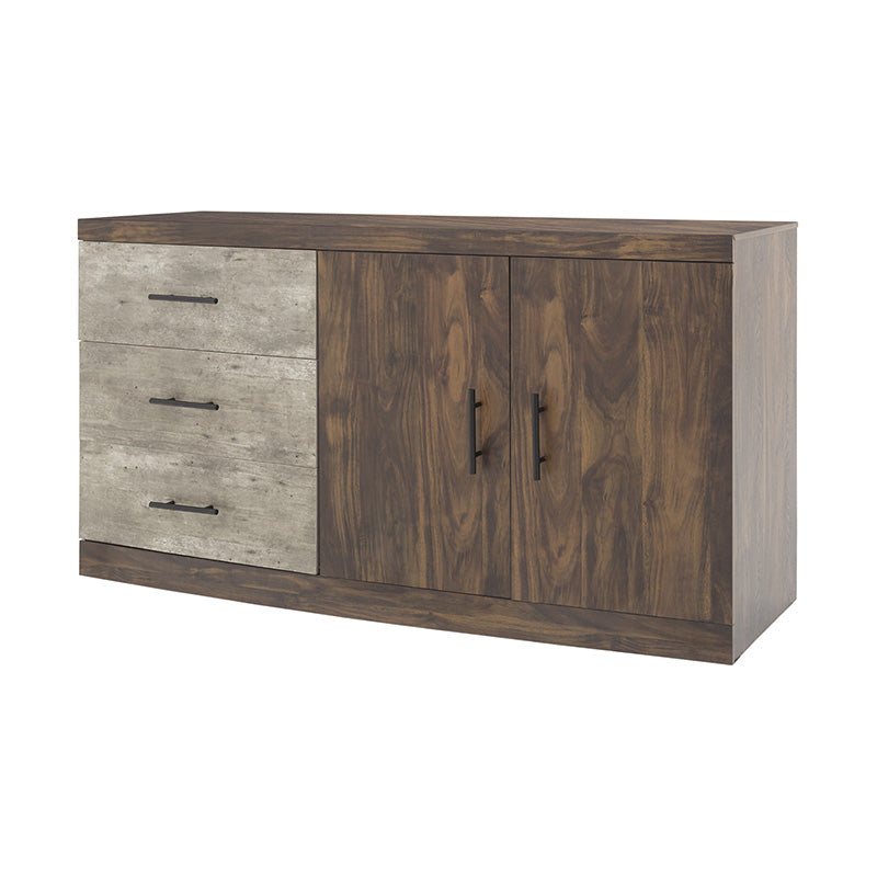 Descubre la elegancia y utilidad del buffet Amara, el compañero perfecto para tu comedor. Su cava para vinos lo hace versátil, mientras que su construcción en madera color nogal gris mate garantiza durabilidad y lujo. Este buffet no solo almacena, sino que también realza el ambiente con su diseño y funcionalidad con sus dos cajones y tres jaladeras