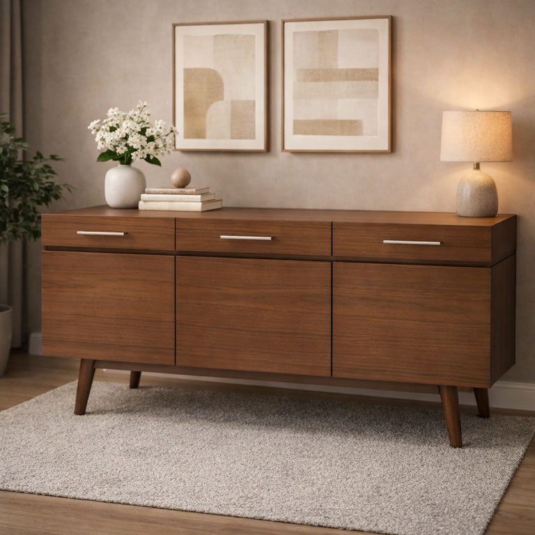 El Buffet Atenea es la pieza ideal para complementar tu comedor o estancia con un equilibrio perfecto entre diseño contemporáneo y practicidad. Su estética limpia y elegante aporta orden y sofisticación al espacio, mientras que su estructura funcional ofrece amplio espacio de almacenamiento para vajillas, mantelería o accesorios decorativos. Un buffet versátil que eleva la decoración de tu hogar con estilo y presencia.