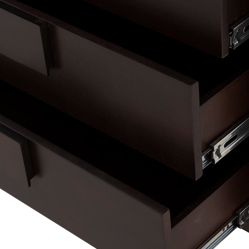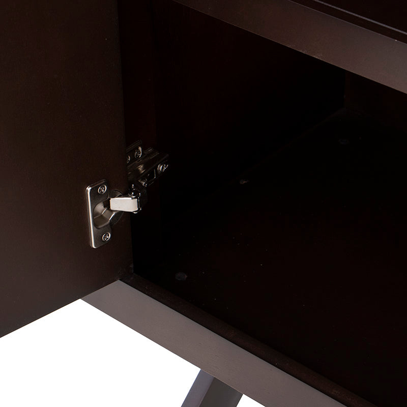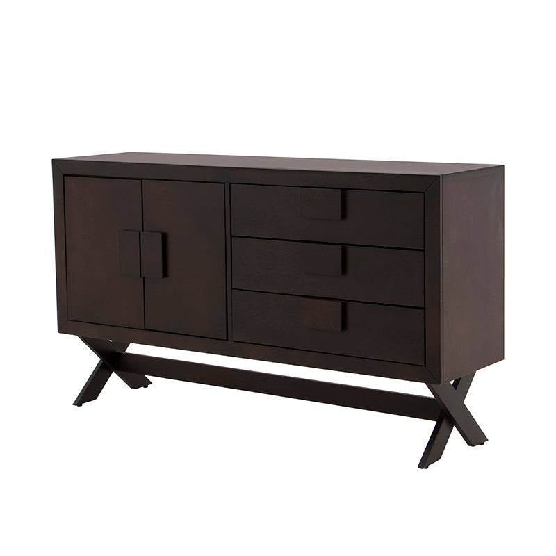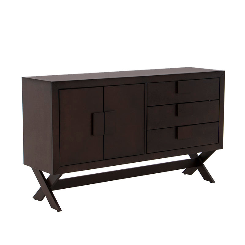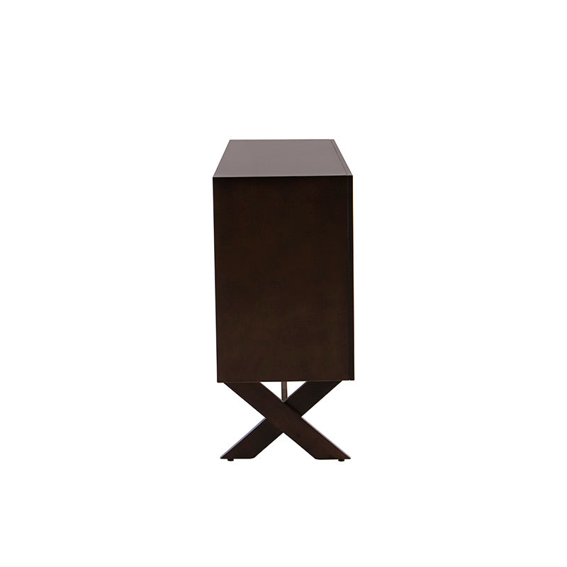 Fabricado en resistente pino con chapa de nogal americano, este aparador ofrece una durabilidad excepcional y un acabado sofisticado que realza cualquier espacio.