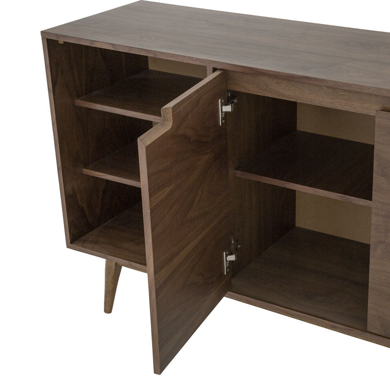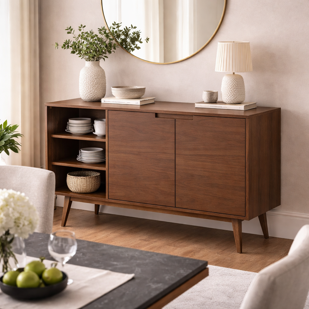 El Buffet Balam es una pieza que equilibra diseño contemporáneo y esencia retro, ideal para complementar tu comedor o sala con elegancia atemporal. Fabricado en madera sólida de pino de primera calidad con aplicaciones en chapa de nogal, ofrece resistencia, calidez y funcionalidad en un formato estilizado de 160 cm de largo. Su diseño limpio y proporciones equilibradas lo convierten en el aliado perfecto para organizar vajilla, decoración o accesorios, aportando carácter y sofisticación a cualquier espacio.