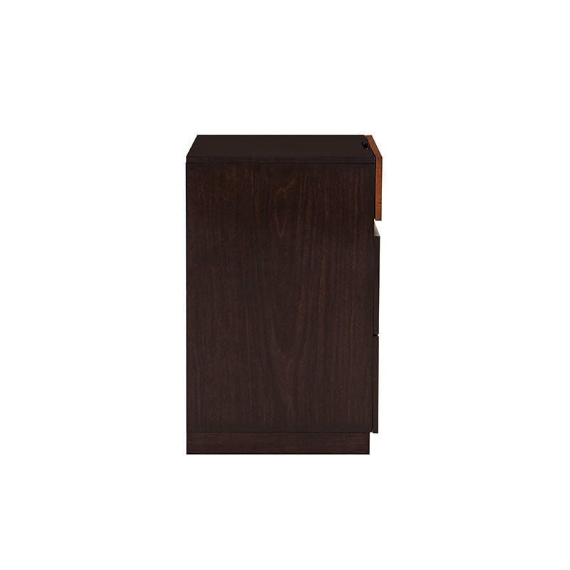 El Buró Basil eleva por completo la estética de tu recámara gracias a su combinación de tonos tabaco y nuez, que aportan una calidez envolvente y una presencia sofisticada. Su enchapado en madera de fresno destaca por su textura fina y natural, ofreciendo un diseño contemporáneo que equilibra funcionalidad y estilo. Sus líneas limpias y modernas se integran con facilidad en cualquier dormitorio, convirtiendo este buró en una pieza esencial para mantener tus objetos siempre organizados sin perder elegancia.