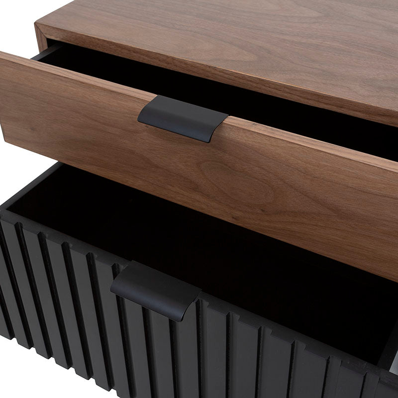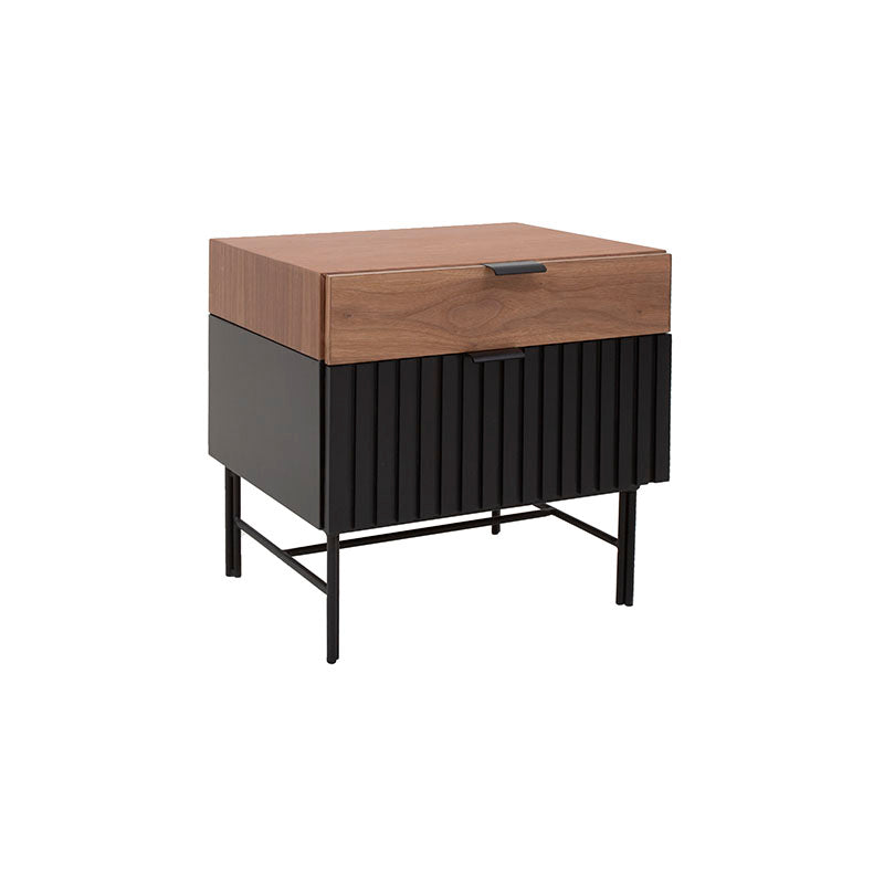 Nuestro Buró Jess es la adición perfecta para tu habitación. Fabricado con madera industrializada y madera de pino enchapada en nogal, ofrece una calidad excepcional. Las bases y jaladeras metálicas añaden un toque moderno y resistencia. La combinación de colores nogal y negro crea un estilo llamativo. Además, su diseño inteligente te proporciona espacio de almacenamiento práctico y elegante.