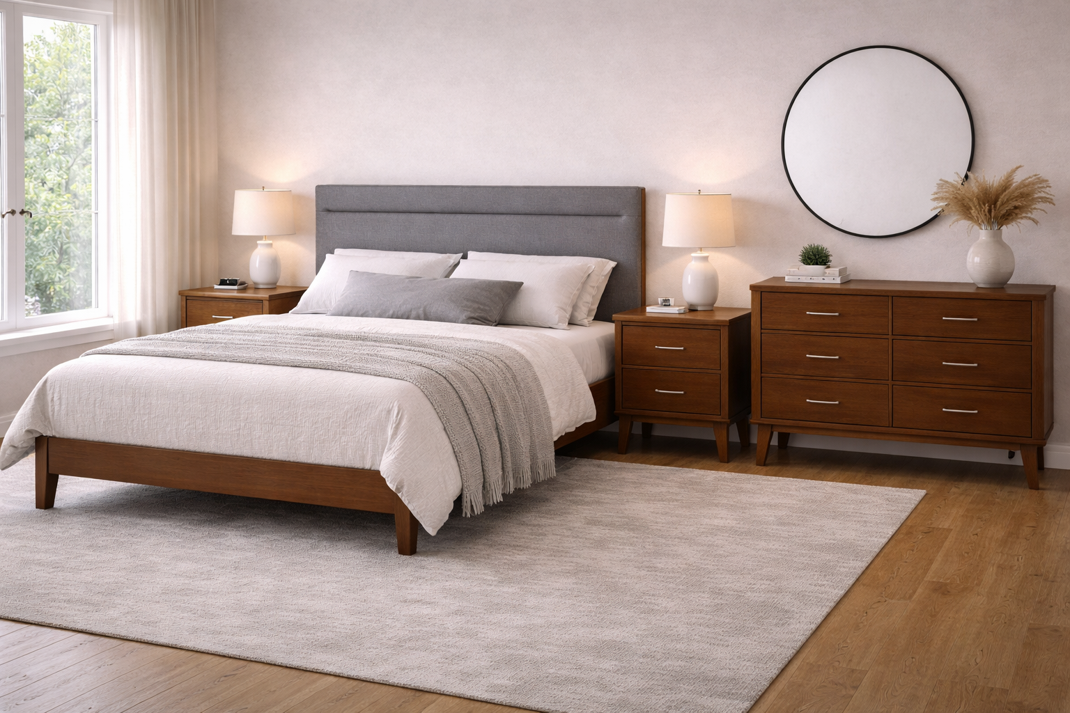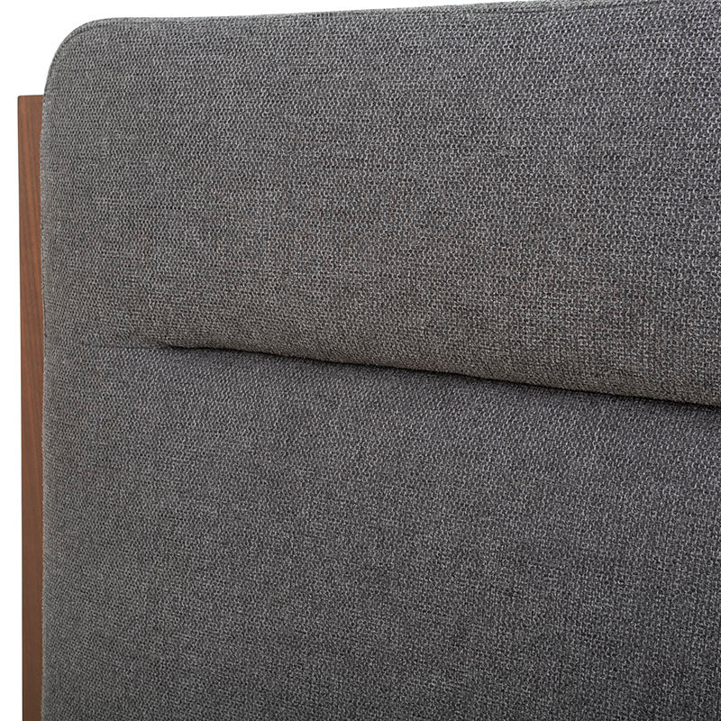 Elegancia definida, la cabecera Atenea fusiona madera industrializada con chapa de nogal en tono almendra, evocando serenidad y sofisticación. Su tapizado en tela tejido plano color gris oscuro añade una dosis de sobriedad y elegancia, como un toque de elegancia en tu refugio de descanso. Un componente esencial para crear un oasis de lujo y serenidad en tu dormitorio.