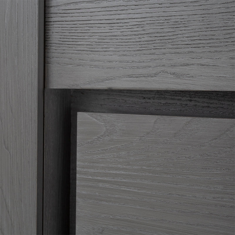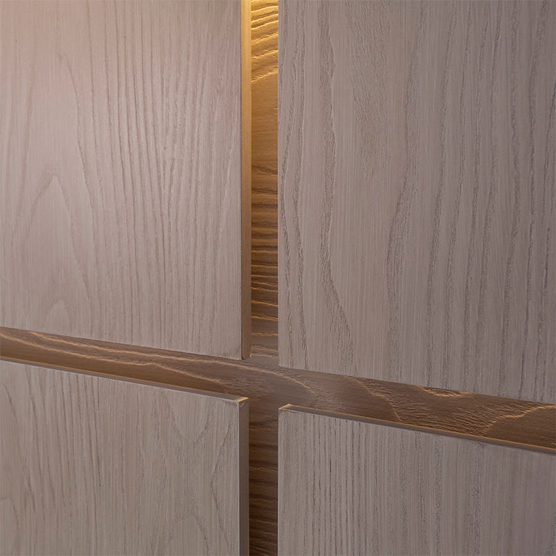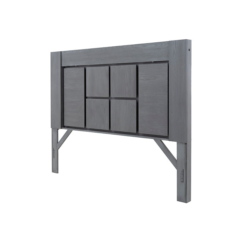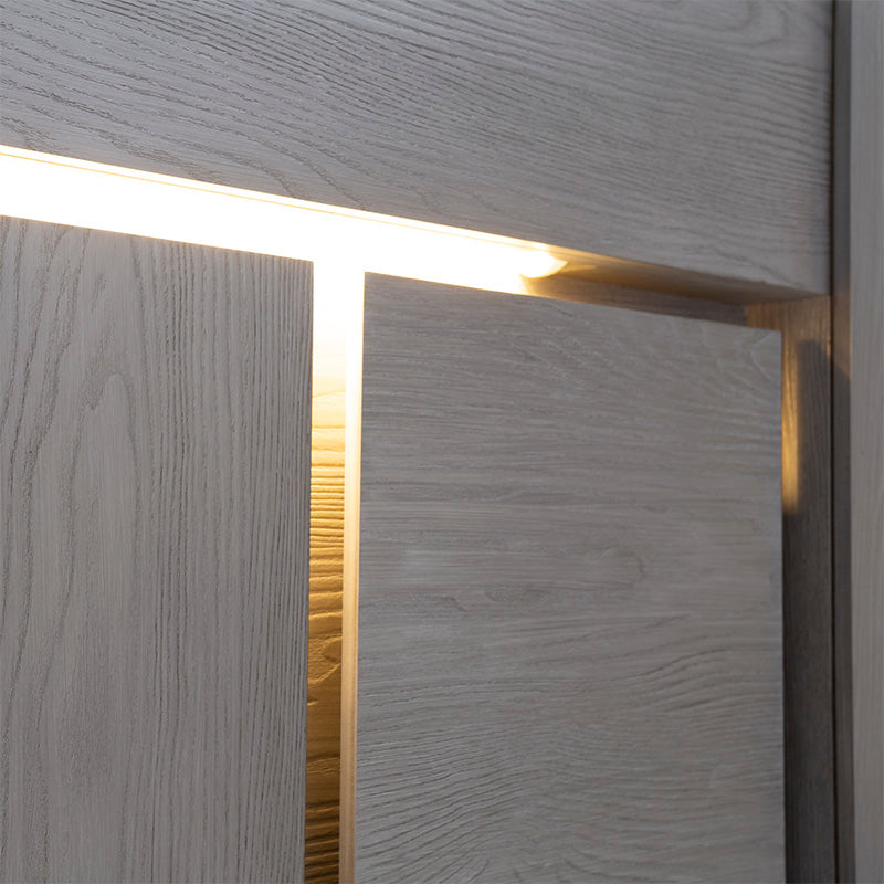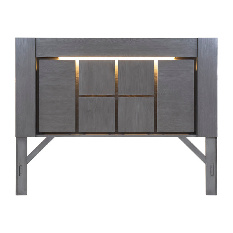 La cabecera King Size Durham en color gris claro, elaborada con una combinación de madera de pino y madera industrializada, presenta grabados detallados que le dan un aspecto elegante y sofisticado. Además, cuenta con una barra de luz LED incorporada, proporcionando una iluminación suave y acogedora para tu dormitorio.