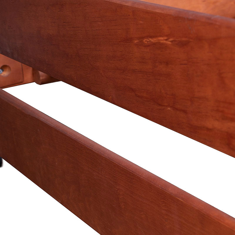 Confeccionada en una combinación de madera de pino y madera industrializada en elegante tono nogal, este mueble aporta calidez y resistencia a cualquier recámara.