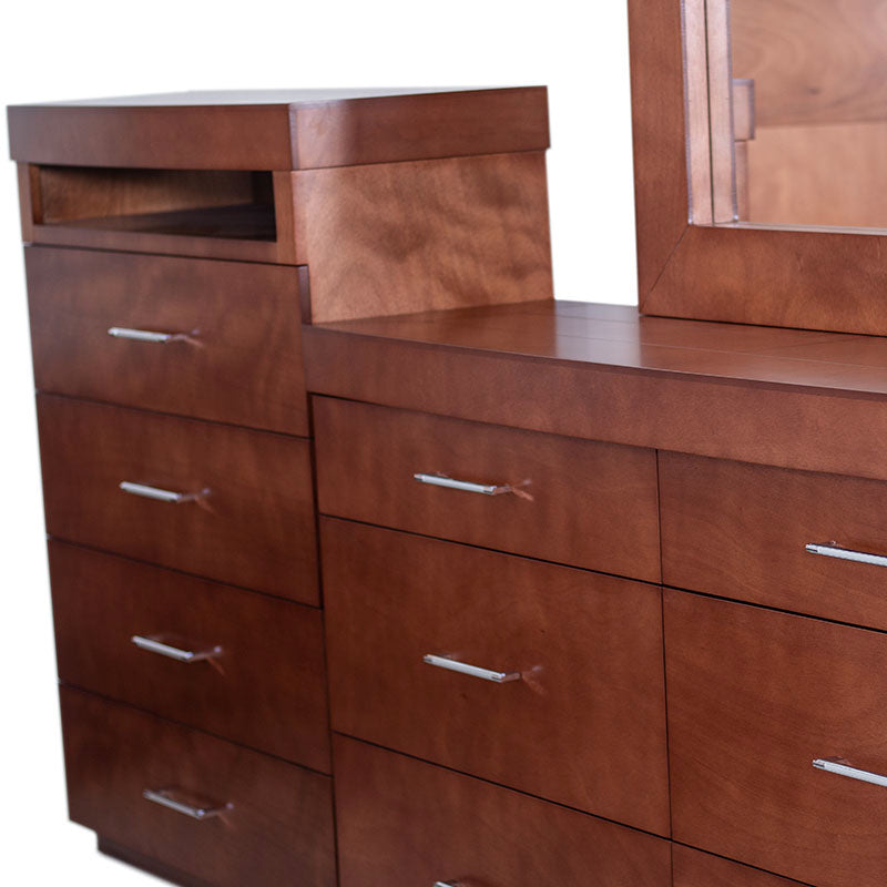 Sus amplios cajones permiten organizar tu ropa y accesorios de manera funcional, manteniendo tu espacio siempre ordenado y con estilo.