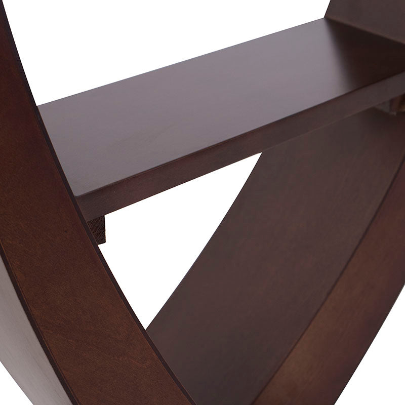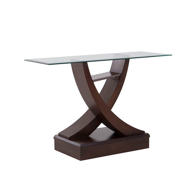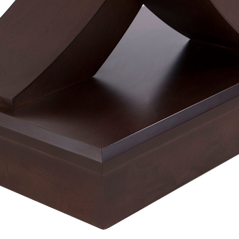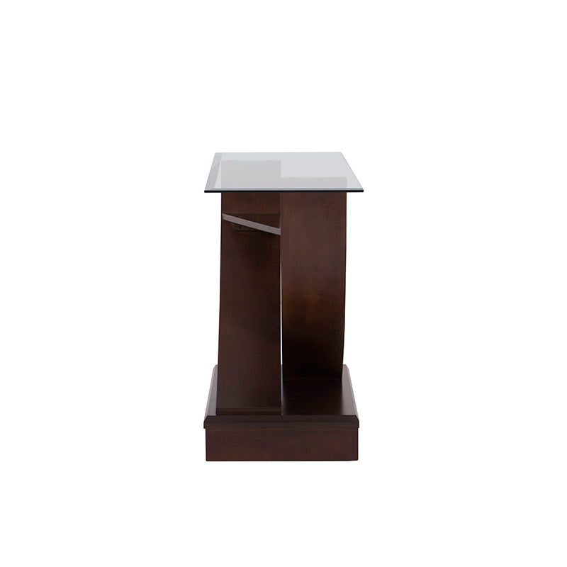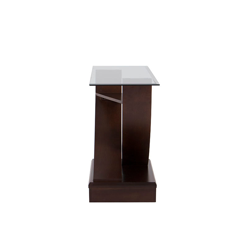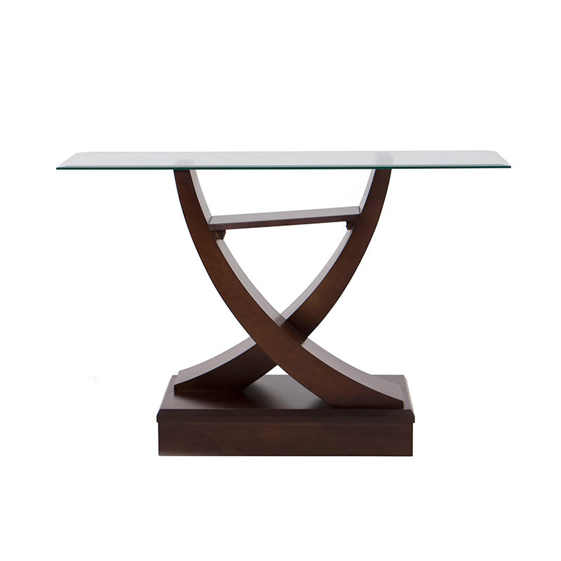 Fabricada en resistente madera de Hack Berry con acabado en nogal, su diseño se enriquece con una cubierta de cristal biselado que aporta luminosidad y modernidad.