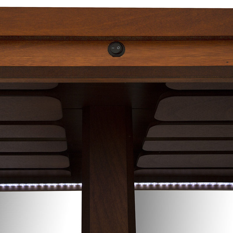 La contrabarra Quetzal es la extensión perfecta de un espacio social con carácter y elegancia. Su diseño en madera con acabado color tabaco transmite una sensación de calidez natural, al mismo tiempo que proyecta solidez y distinción.