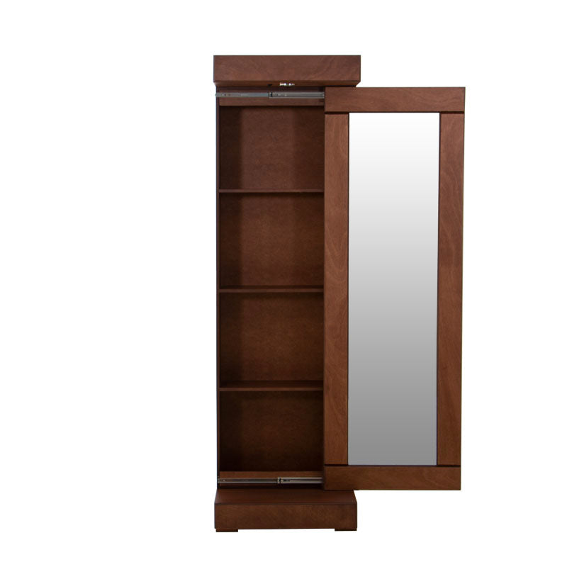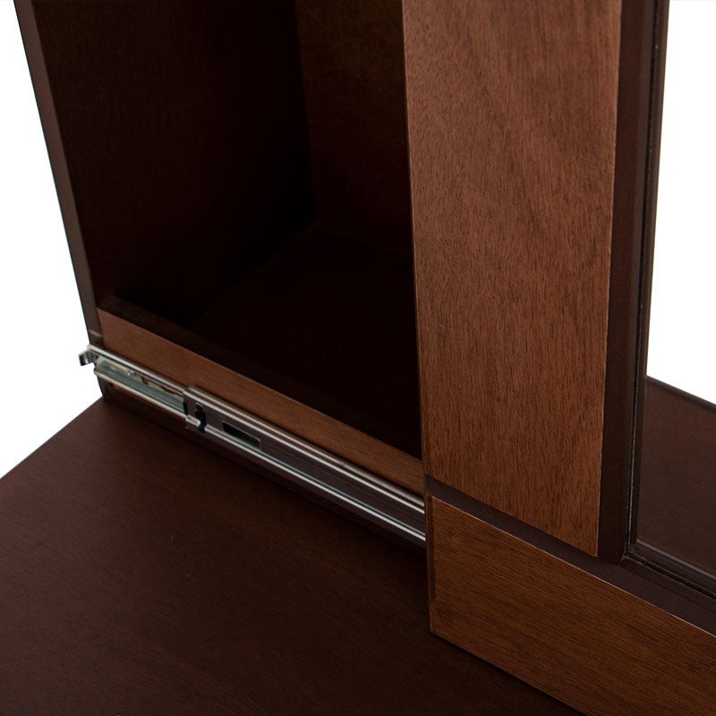 El alhajero oculto en el interior ofrece un espacio inteligente para mantener tus joyas siempre ordenadas y seguras, convirtiendo este espejo en un mueble multifuncional que aporta tanto estética como utilidad. Ideal para quienes buscan optimizar el espacio sin renunciar al diseño contemporáneo.