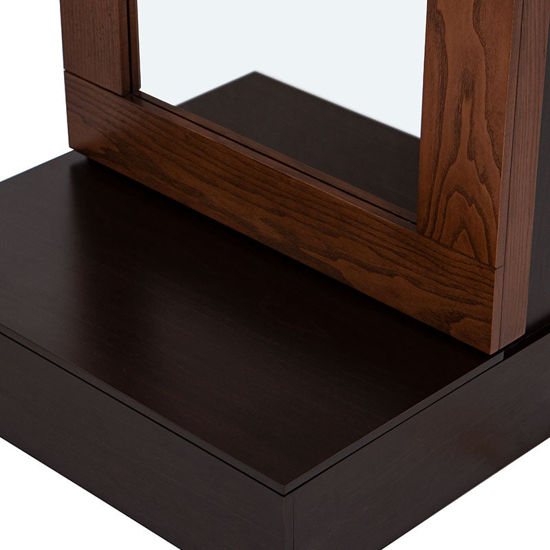 Refleja estilo y elegancia con el espejo vertical de la recámara Basil. La fusión de tonos tabaco y nuez, con su enchapado en madera de fresno, crea una belleza excepcional. Inspirado en lo contemporáneo, este espejo funcional incluye compartimentos extras que marcan la diferencia en tu espacio. Añade sofisticación y practicidad a tu hogar con este mueble excepcional. Te ofrece una experiencia única en cada mirada.