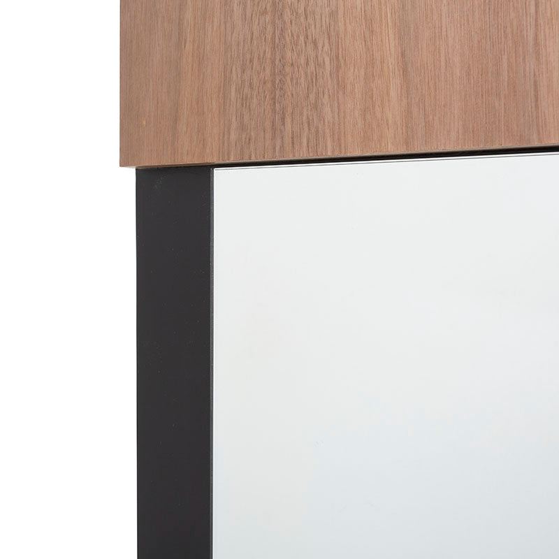 El Espejo Jess ofrece un diseño versátil y durabilidad. Su construcción en madera industrializada y madera de pino enchapada en nogal garantiza una larga vida útil. La combinación de colores nogal y negro añade un toque moderno y atemporal. Este espejo es la opción ideal para realzar la belleza de cualquier habitación de tu hogar.