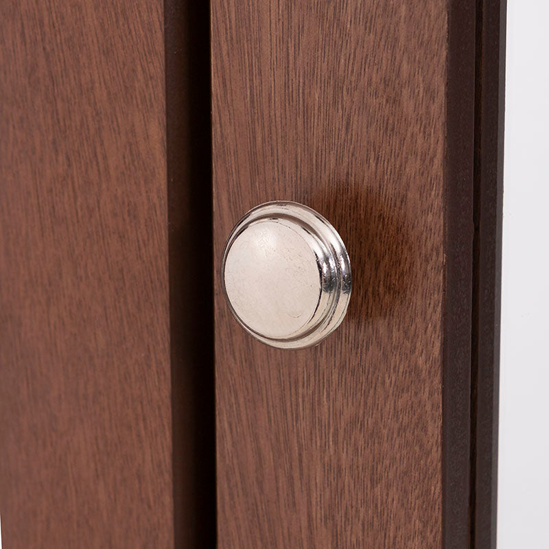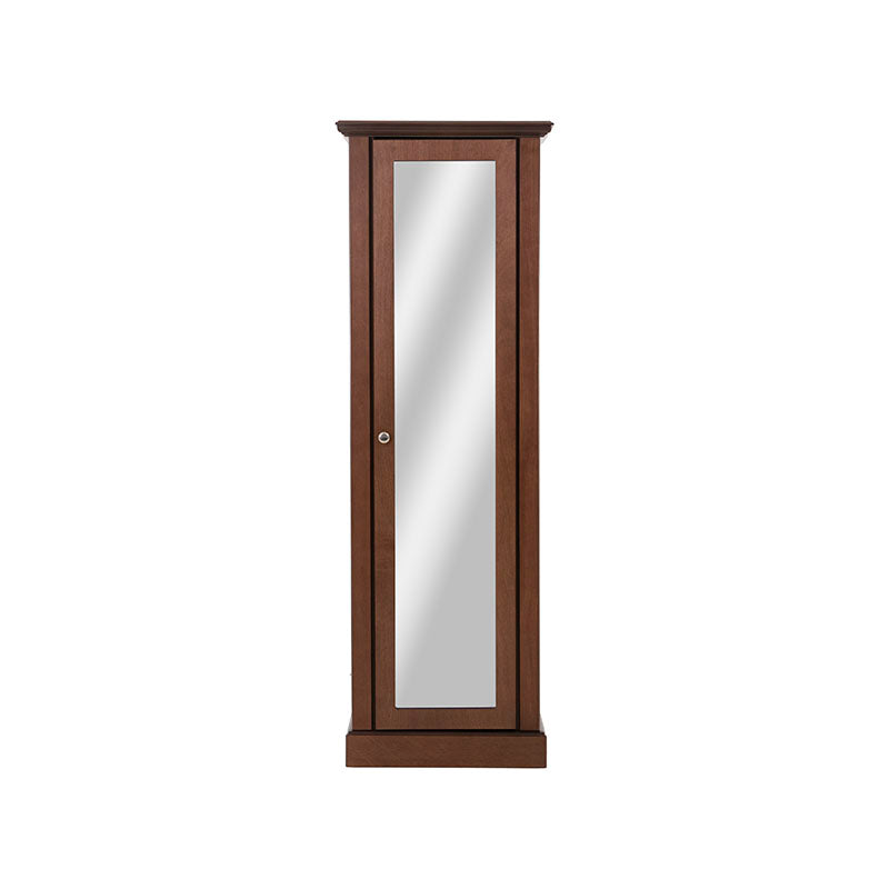 Este espejo de pie integra puerta y entrepaños ocultos, lo que lo convierte en una solución perfecta para organizar accesorios, maquillaje o artículos personales sin renunciar al diseño contemporáneo.