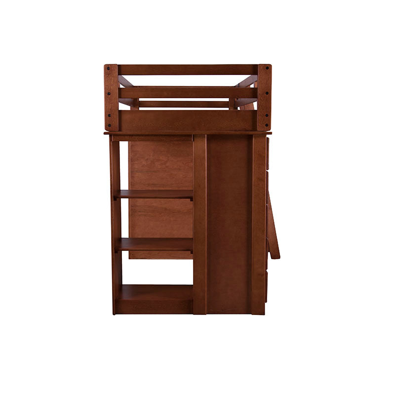 La Cama Alta Texas es la solución perfecta para maximizar el espacio en tu habitación. Fabricada con una combinación de madera industrializada y madera de pino en un tono nogal elegante, esta cama alta ofrece un diseño versátil y funcional. Con un librero y escritorio incorporados, esta cama es ideal para estudiantes o para cualquier persona que busque una solución de espacio inteligente. El diseño inteligente y la calidad de los materiales hacen que sea una elección práctica para tu hogar.