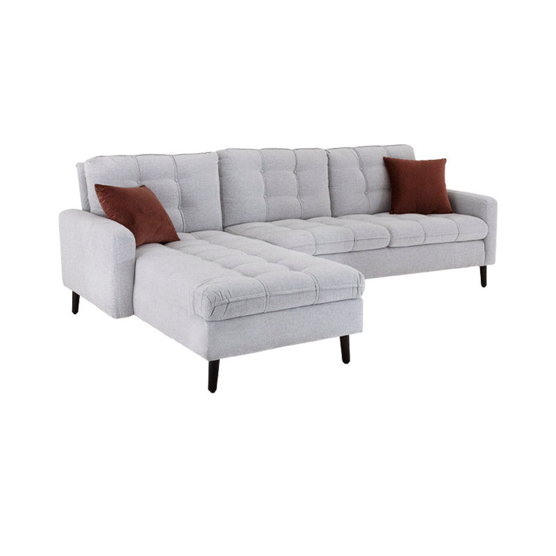Descubre el equilibrio perfecto entre estilo y comodidad con la sala Eugenia. Su diseño con chaise lounge derecho, en un elegante tono marfil Bloom White, ilumina tu espacio con una sensación de calma y sofisticación. Fabricada con estructura de madera de pino y tapizada en tela de tejido plano con textura afelpada, suave al tacto, Eugenia es el lugar ideal para relajarte, compartir y disfrutar cada momento en casa.