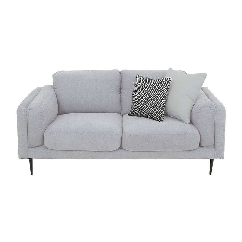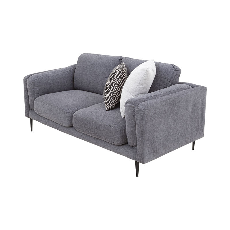 Con capacidad para dos plazas, este sofá moderno combina líneas elegantes con un tapizado en tejido plano de textura afelpada que aporta suavidad y sofisticación a cada momento de descanso.
