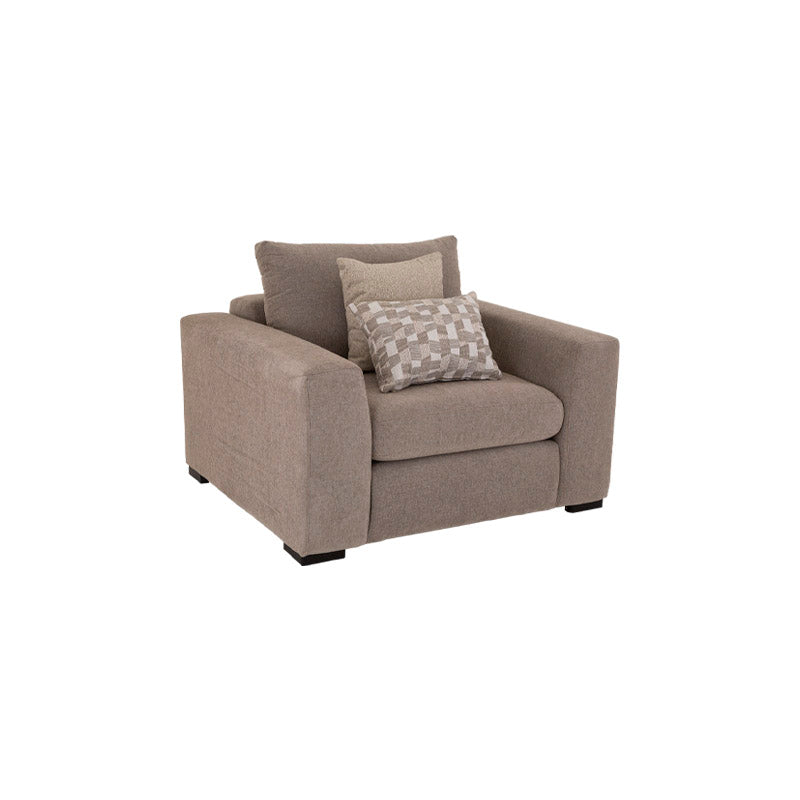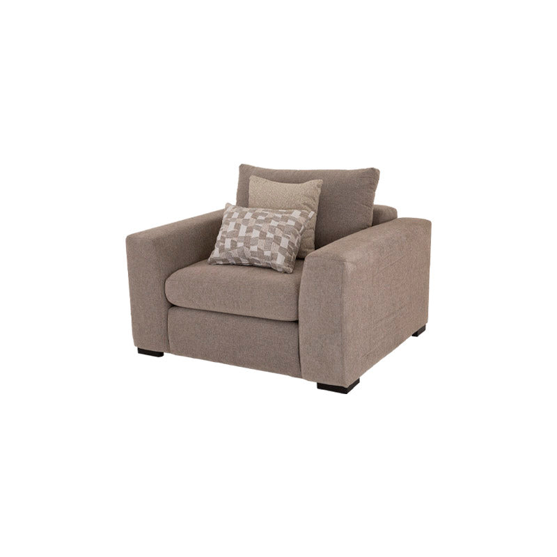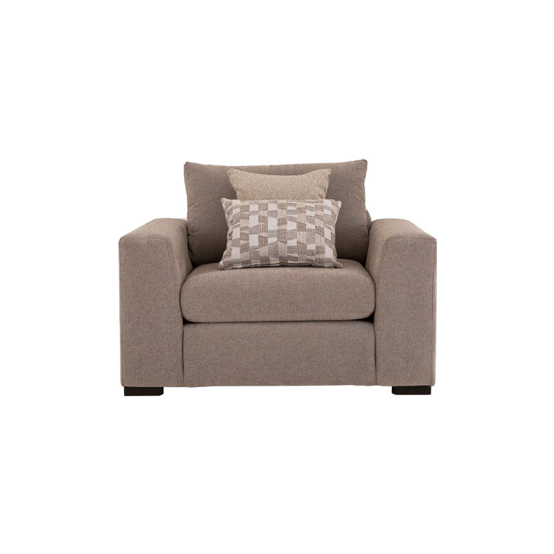 Date un respiro con el sillón Oporto. Compacto, cómodo y elegante, combina una estructura sólida de madera de pino con un tapizado suave y afelpado que te abraza en cada uso. Sus 2 cojines decorativos añaden el toque final para crear un espacio único y personal donde la calma es protagonista.