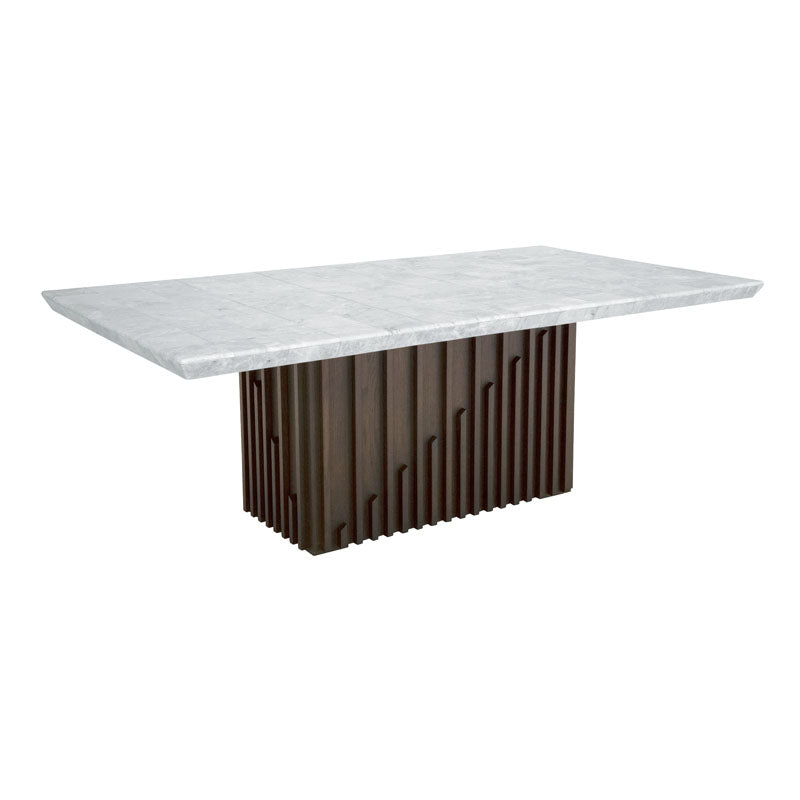 La Mesa de Comedor Murcia combina diseño moderno y funcionalidad con una amplia superficie de 1.20 x 2.10 m, ideal para reuniones y momentos especiales. Su cubierta de mármol blanco aporta elegancia y luminosidad, mientras que su estructura en madera color encino brinda calidez y resistencia, convirtiéndola en una pieza duradera y sofisticada para cualquier comedor.